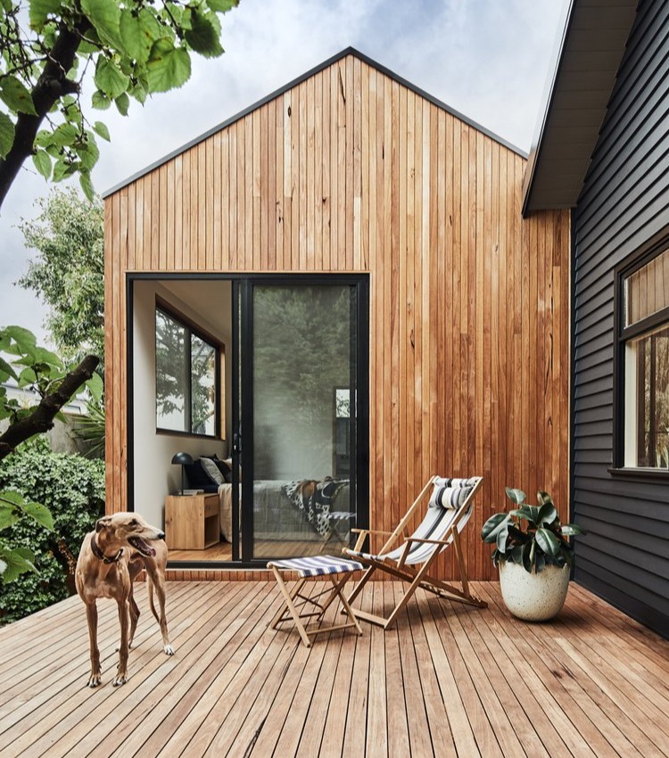 Ten projekt to harmonijne połączenie nowoczesnej stodoły i retro domku, który przez lata zyskał duszę, osobowość i był ukochanym miejscem właściciela. Architekci podjęli się zadania stworzenia przestrzeni łączącej stare z nowym, bez wymazywania istniejącej historii budynku. Dobudówka w formie nowej sypialni i łazienki została zlokalizowana w tylnej części domu, tworząc prywatny azyl i rozszerzając funkcjonalność wnętrza. Dwa drewniane tarasy płynnie łączą wnętrza z dojrzałym ogrodem, pozwalając na kontakt z naturą o każdej porze dnia.