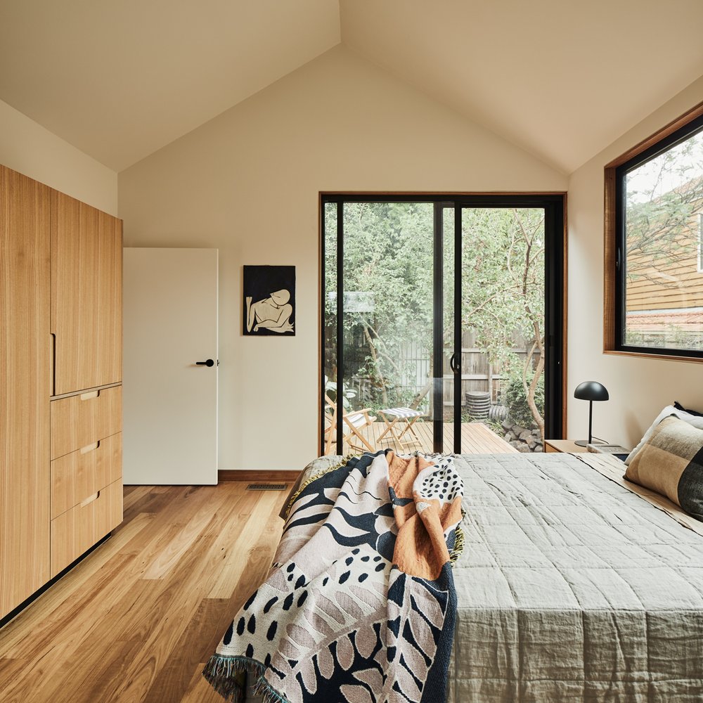 Paleta materiałów jest celowo powściągliwa – drewno dominuje w wykończeniach, nadając ciepła, głębi i przytulności. W tej nowoczesnej stodole z duszą retro to tekstury i światło grają pierwsze skrzypce. Rozbudowa nie tylko zwiększyła funkcjonalność domu, ale też stworzyła spójną, płynną narrację przestrzenną, w której nowe elementy są subtelnym uzupełnieniem, a nie dominującą ingerencją. Wszystko to z poszanowaniem dla ogrodu i naturalnego światła.