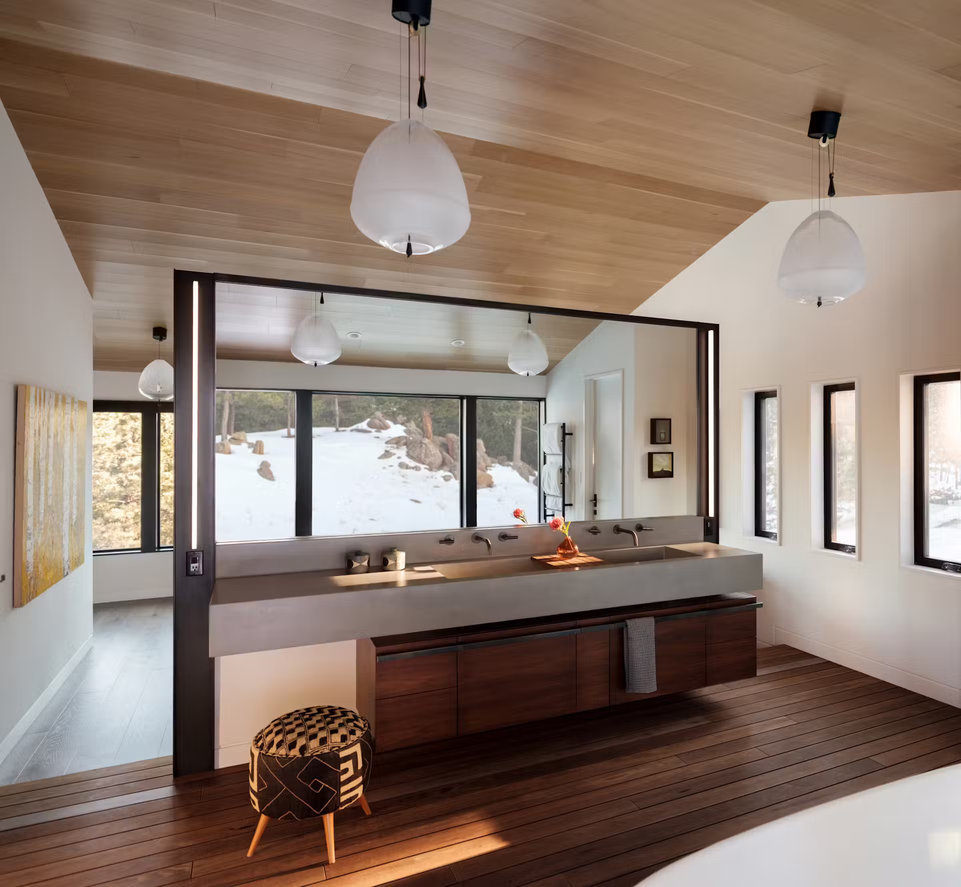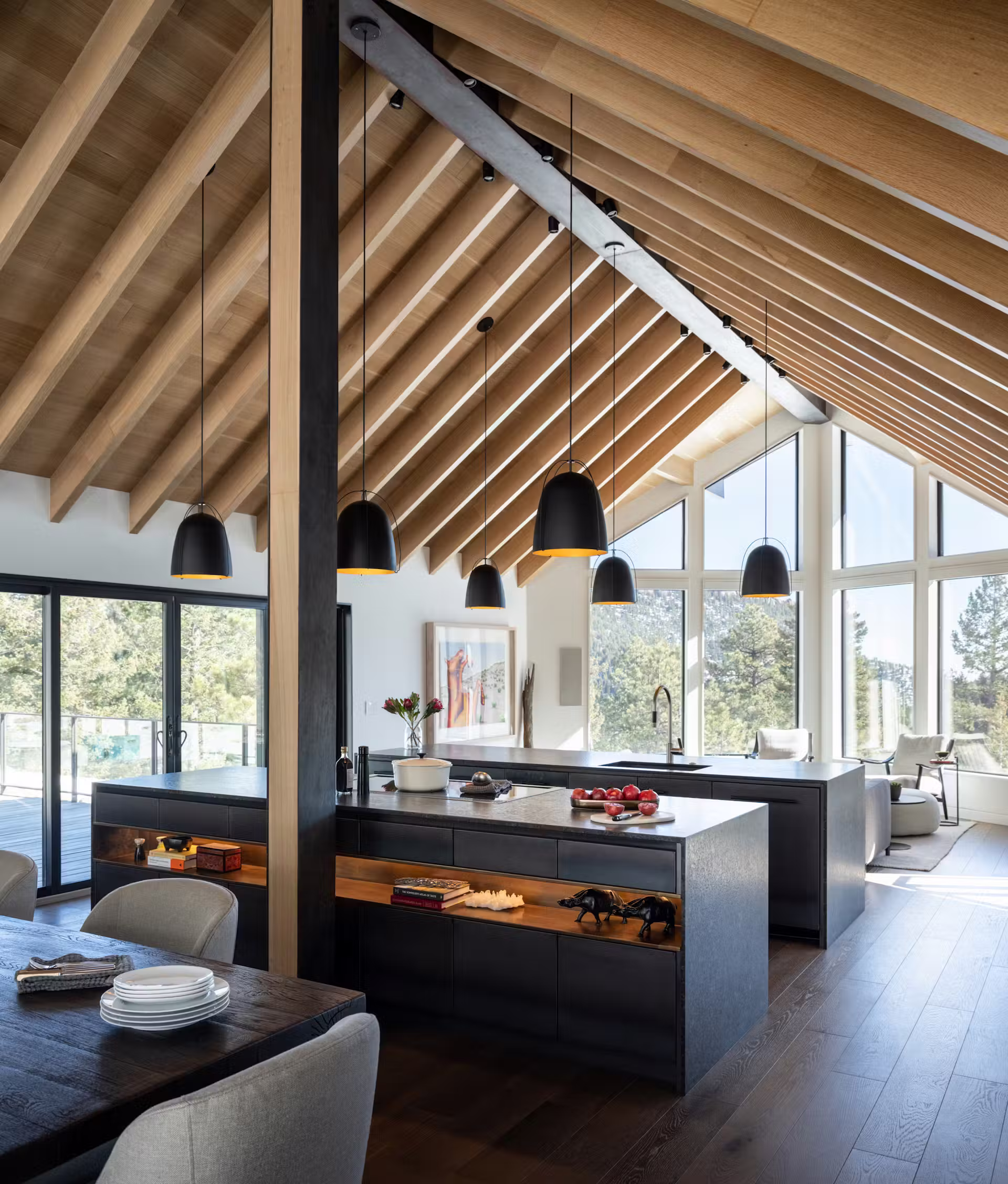 Bear Peak, malowniczy szczyt w paśmie Front Range Mountains, od lat pozostaje jednym z ulubionych miejsc odpoczynku mieszkańców Boulder. Położenie na zboczu góry zapewnia wyjątkowe widoki i bezpośredni kontakt z naturą, a jednocześnie pozwala na sprawny dojazd do centrum miasta. To właśnie tutaj pracownia HMHAI podjęła się transformacji charakterystycznego, drewnianego domu z lat 70., nadając mu nową tożsamość współczesnej górskiej rezydencji.