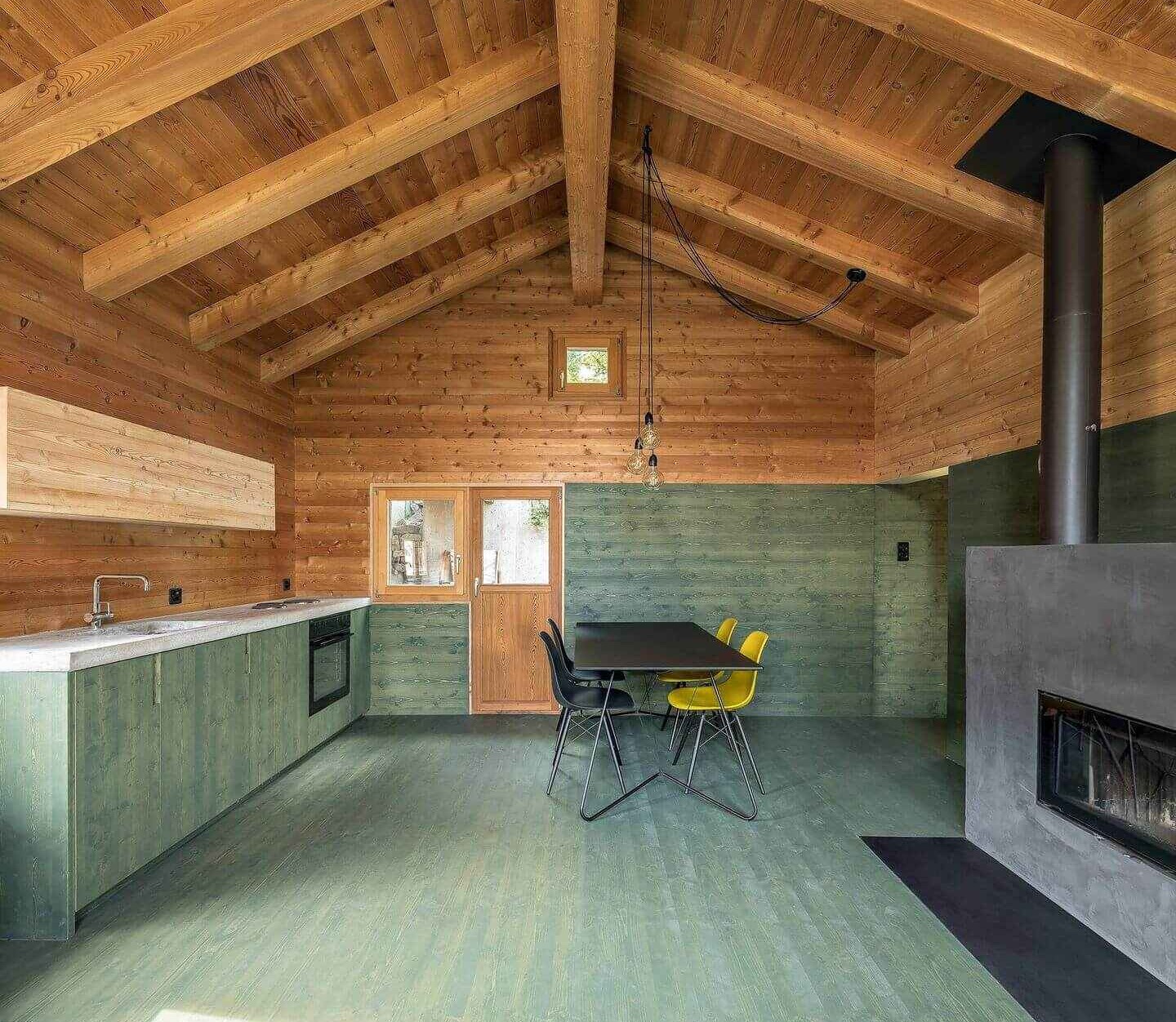 Efektem ich pracy jest harmonijne połączenie starej alpejskiej architektury z nowoczesnymi detalami. Przebudowany dom zyskał nowe otwory okienne, starannie rozmieszczone w fasadzie, by otworzyć wnętrze na panoramiczne widoki Alp. Całość zachowała rustykalny klimat, ale dzięki współczesnym akcentom – jak przeszklone wnętrza czy kominek z systemem rozprowadzania ciepła – wpisuje się we współczesne standardy życia. Przestrzeń została zoptymalizowana pod względem funkcjonalnym – na parterze zaplanowano dwa dodatkowe pokoje i łazienkę, a piętro przeznaczono na jasną strefę dzienną z nową kuchnią.