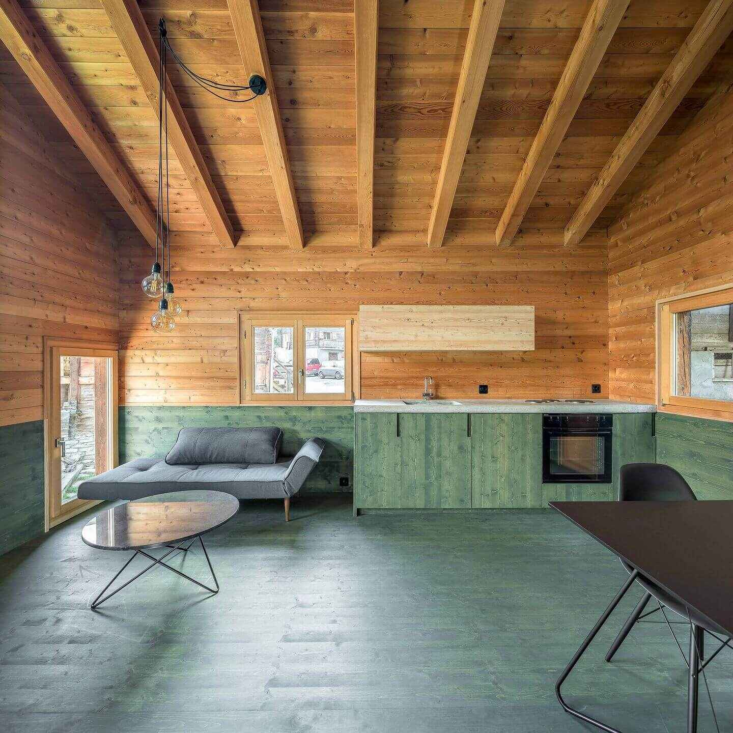 W malowniczej wiosce Zeneggen, położonej na wysokości 1450 m n.p.m. w szwajcarskich Alpach, architekci z atelier Brandau Ciccardini podjęli się wyjątkowej renowacji. Ich celem było zachowanie tradycyjnego charakteru zabytkowej, drewnianej chaty, a jednocześnie nadanie jej świeżego, współczesnego wyrazu. Wieś, licząca niespełna trzystu mieszkańców, do dziś zachowuje autentyczny, górski klimat, a otaczające ją stuletnie domy alpejskie tworzą jednolitą tkankę architektoniczną. Z tego powodu projektanci musieli działać z ogromnym szacunkiem do kontekstu miejsca – zarówno krajobrazowego, jak i kulturowego.