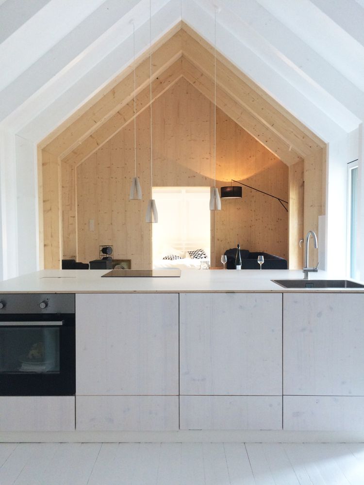 Z zewnątrz budynki przypominają ciemne, minimalistyczne monolity, jednak wnętrze zaskakuje jasnością i ciepłem naturalnego drewna. Surowe, białe powierzchnie drewniane porządkują przestrzeń, dzieląc ją na kuchnię, salon i strefę spania, tworząc funkcjonalną i spójną sekwencję wnętrz. Podczas budowy wykorzystano lokalne drewno świerkowe, które było pozyskiwane, suszone i obrabiane na miejscu, co zapewnia doskonałe właściwości termiczne nawet przy temperaturach sięgających –30°C. Połączenie lokalnych materiałów z prefabrykowanymi elementami konstrukcyjnymi, oknami, drzwiami i meblami pozwoliło zrealizować projekt w zaledwie 8 tygodni. Mökki Santara to przykład fińskiej architektury, w której tradycja, rzemiosło i idea nowoczesnej stodoły tworzą harmonijną całość zanurzoną w naturze.
