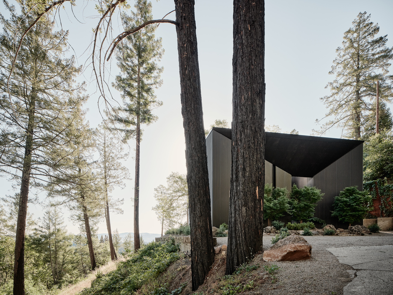 Położona wśród wysokich sekwoi na zboczu Mount Veeder, ostoja ta wychodzi na Yountville i Stags Leap w Kalifornii. Otoczona przez lasy zniszczone przez niedawne pożary, rezydencja symbolizuje harmonię z naturą i odporność na przeciwności losu. Klienci, Ridgie i Buttons, wykorzystali to miejsce jako schronienie, które łączy ich z korzeniami w południowej Kalifornii, oferując przestrzeń do spędzania czasu z rodziną i przyjaciółmi.