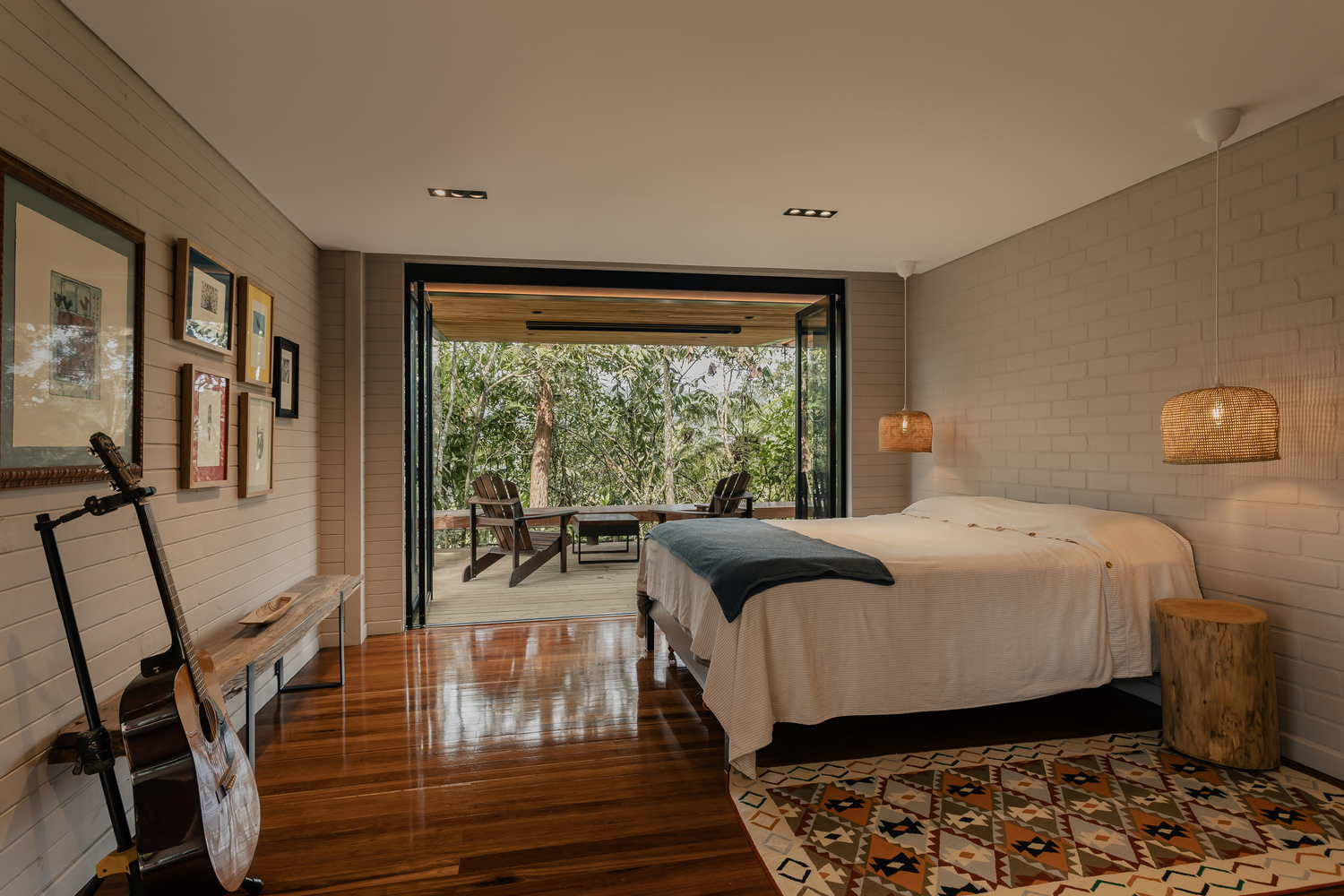 Architekci skupili się na dwóch głównych elewacjach, traktując je jako strefy pośrednie między wnętrzem a krajobrazem. Jedna z nich została przeprojektowana pod kątem funkcjonalnym – uporządkowano układ techniczny domu, poprawiając jego efektywność, komfort i możliwość całorocznego użytkowania. To właśnie tam skoncentrowano zaplecze „serwisowe”, które pozwala budynkowi działać jak nowoczesny dom, mimo jego pierwotnej, lekkiej konstrukcji.