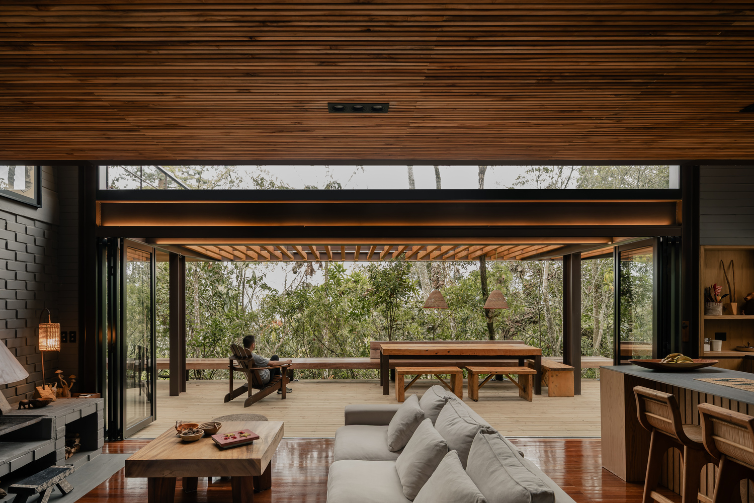 Druga elewacja – skierowana w stronę krajobrazu – została maksymalnie otwarta. Powiększone przeszklenia i wprowadzenie elementów przejściowych, takich jak półotwarte strefy, pozwoliły na zatarcie granicy między wnętrzem a zewnętrzem. Przestrzenie dzienne i prywatne zaczynają tu „wychodzić” na zewnątrz, a krajobraz staje się integralną częścią codziennego życia mieszkańców.