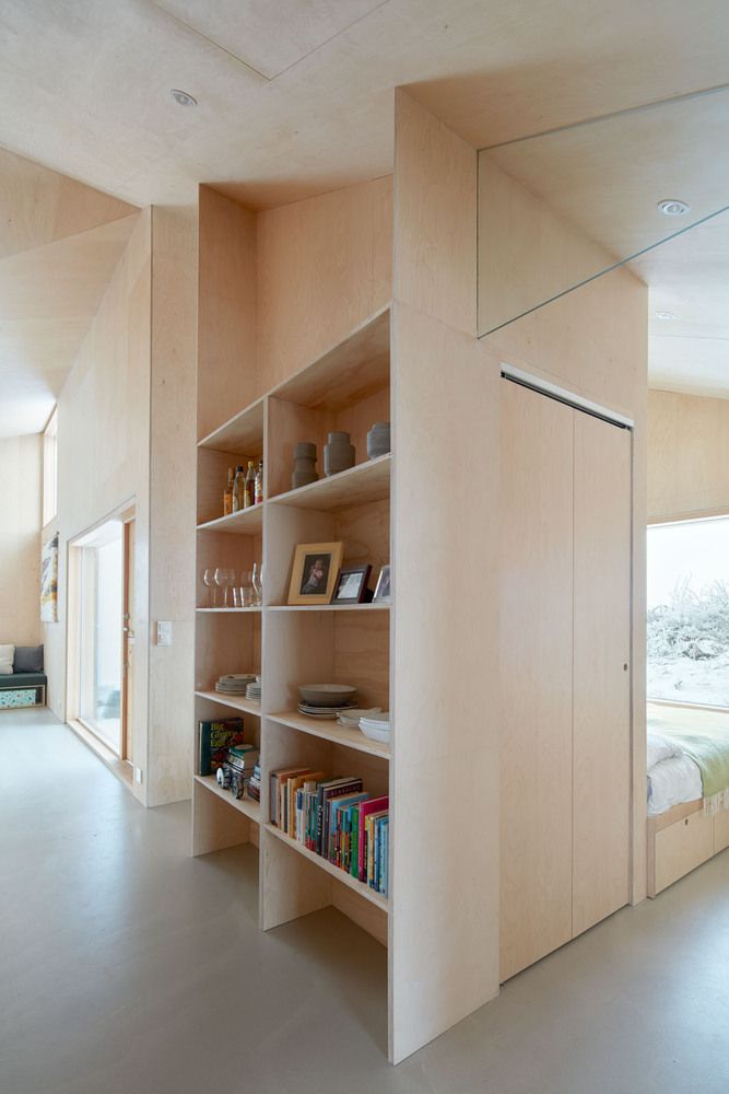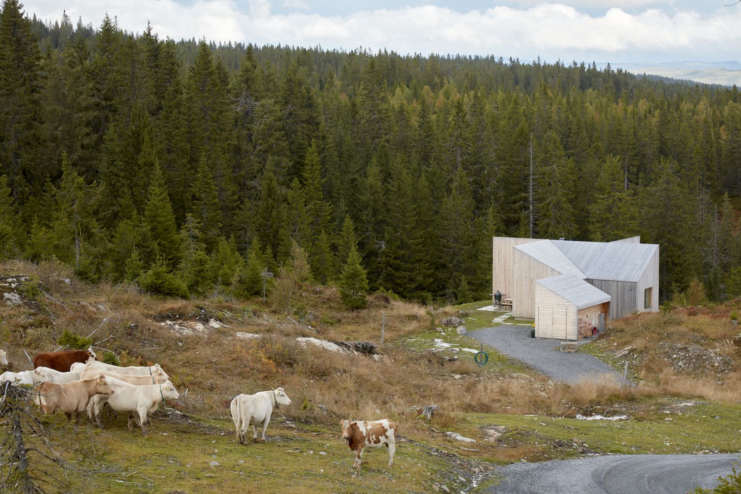 Projekt domu został powierzony pracowni Mork-Ulnes Architects, która stworzyła nowoczesną „hytte” – kompaktową i funkcjonalną, ale pełną światła i otwartości. Klienci oczekiwali trzech sypialni (w tym jednej z łóżkami piętrowymi dla dzieci), dwóch małych łazienek, sauny z wyjściem na zewnątrz oraz schowka na narty i rowery. Na zaledwie 84 m² udało się zmieścić wszystkie te elementy, nie tracąc przy tym przestrzeni i komfortu. Architekci zrezygnowali z tradycyjnego, ciemnego i podzielonego układu wnętrz, tworząc płynnie przechodzącą przestrzeń mieszkalną z funkcjonalnym podziałem na strefy. Pochylone sufity i naturalne światło potęgują wrażenie przestronności.