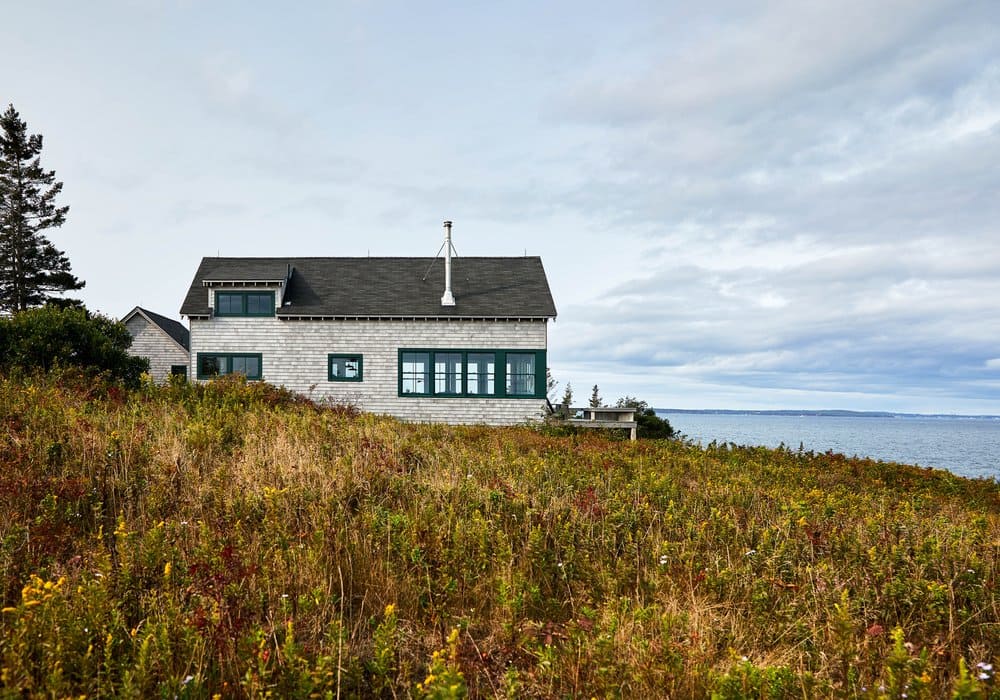 Ten wyjątkowy dom letni dla rodziny, położony na malowniczej wyspie North Haven w stanie Connecticut, to przykład architektury idealnie wkomponowanej w naturalne otoczenie. Składa się z trzech powiązanych ze sobą budynków, osadzonych bezpośrednio przy skalistej przepaści, co umożliwia maksymalne wykorzystanie zapierających dech w piersiach widoków na okolicę. Dzięki przemyślanemu rozmieszczeniu zabudowy w różnych kierunkach, każdy z segmentów domu oferuje niezależny widok na ocean i linię horyzontu.