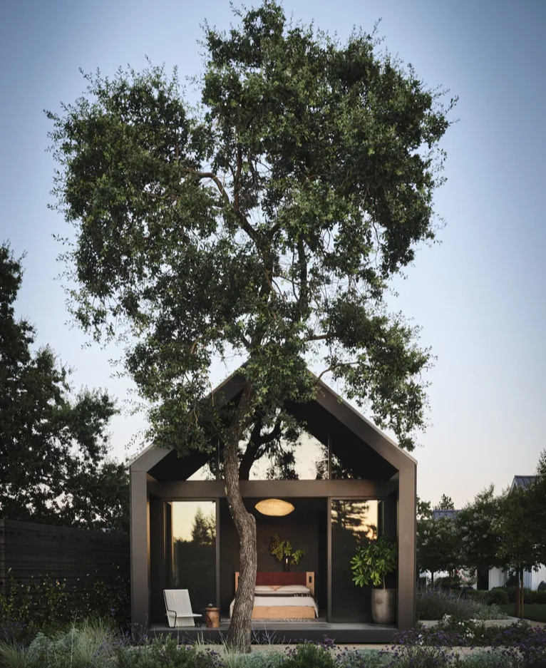 Położony w sercu regionu winiarskiego Napa Valley, pensjonat zaprojektowano jako wyjątkową przestrzeń rozrywkową na istniejącej posesji właścicieli. Para z trójką małych dzieci pragnęła stworzyć osobną strefę na swojej posiadłości, która będzie doskonale łączyć nowoczesny design z komfortem. Rezultatem jest projekt inspirowany koncepcją nowoczesnej stodoły, realizowany we współpracy z zespołem NICOLEHOLLIS i Arcanum Architecture.