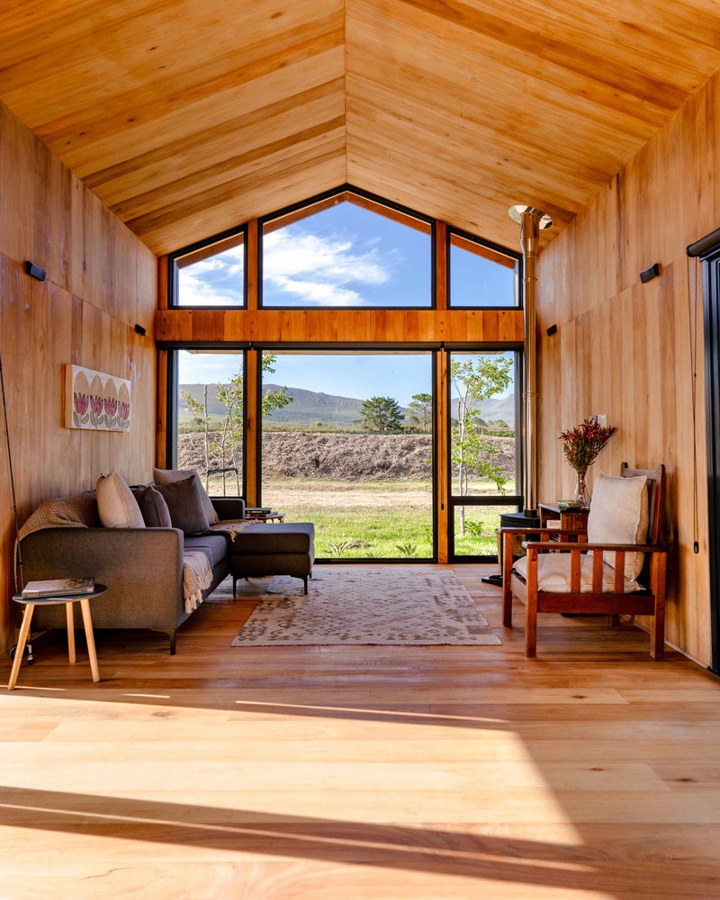 Lodge położony na farmie nawozów organicznych w malowniczym regionie Western Cape to przykład harmonijnego połączenia nowoczesnej architektury z naturalnym krajobrazem. Trójskrzydłowy układ budynku zapewnia maksymalne wykorzystanie widoków, optymalną orientację względem słońca oraz skuteczną ochronę przed dominującymi wiatrami. Centralny, osłonięty dziedziniec z gorącą balią i miejscem na tradycyjny południowoafrykański braai tworzy idealne warunki do relaksu.