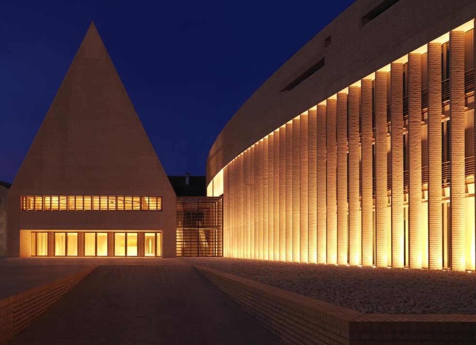 Zarówno przestrzenie zewnętrzne, jak i wnętrza budynku stanowią świadomą reinterpretację założeń urbanistycznych i architektonicznych Luigiego Snozziego, odrzucając proste konwencje formalne na rzecz architektury przestrzeni, porządku i symbolicznej „nieskończoności”. Czysta, niemal ascetyczna materialność nadaje obiektowi ponadczasowy charakter, a część plenarna została wzbogacona wysublimowaną sztuką Sabine Laidig, która tworzy subtelną syntezę z minimalistyczną przestrzenią. W tym sensie budynek – mimo swej instytucjonalnej funkcji – bywa porównywany ideowo do pojęcia nowoczesna stodoła: archetypicznej formy przefiltrowanej przez współczesne myślenie o funkcji, strukturze i znaczeniu miejsca.