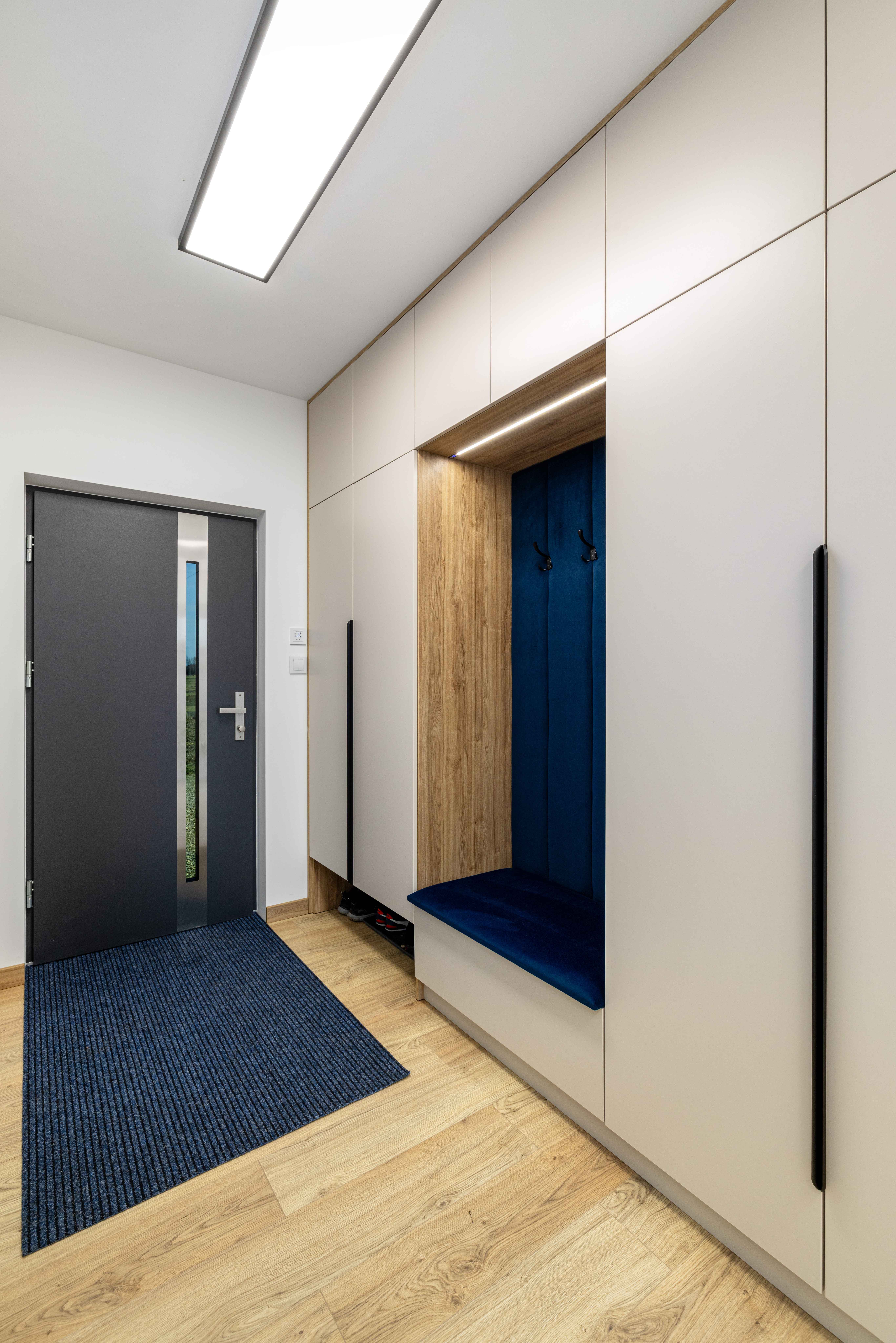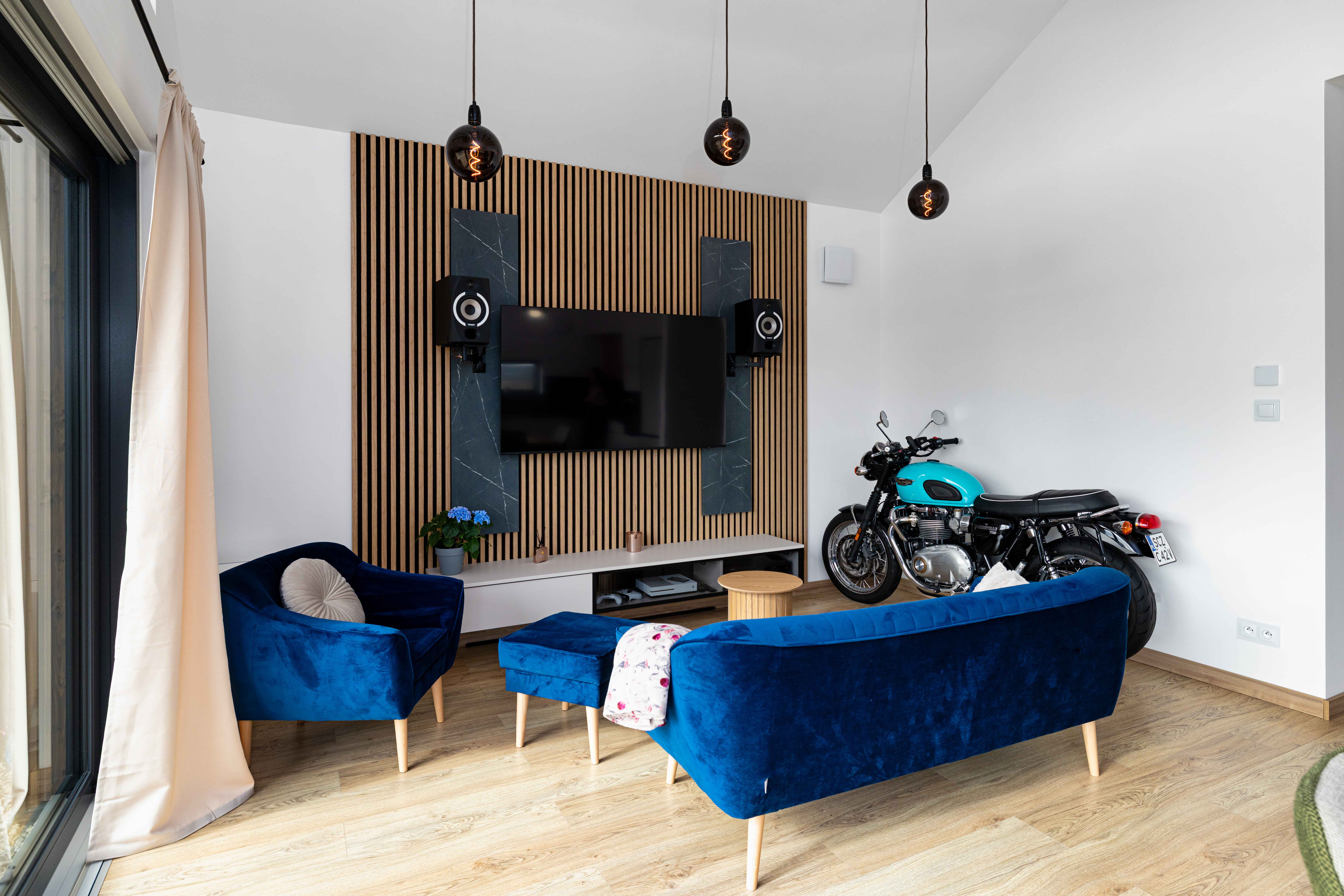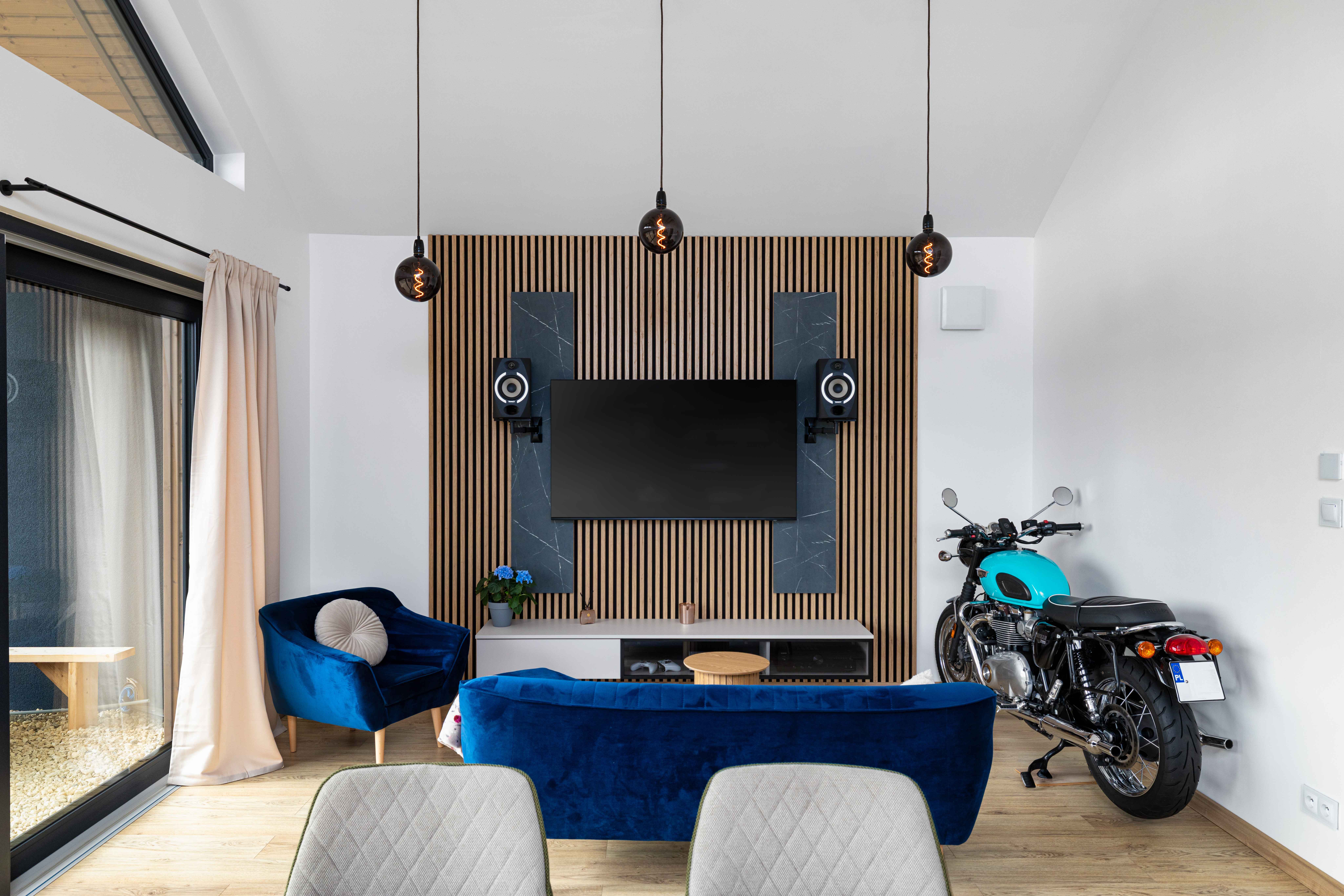 Wnętrze zostało zaprojektowane z myślą o wygodzie mieszkańców i obejmuje 3 sypialnie, które zapewniają komfortową przestrzeń do odpoczynku. Centralnym punktem domu jest przestronny salon z aneksem kuchennym, tworzący jasną i otwartą strefę dzienną. Model NH80 to harmonijne połączenie estetyki, funkcjonalności i nowoczesnej architektury w stylu nowoczesnej stodoły.