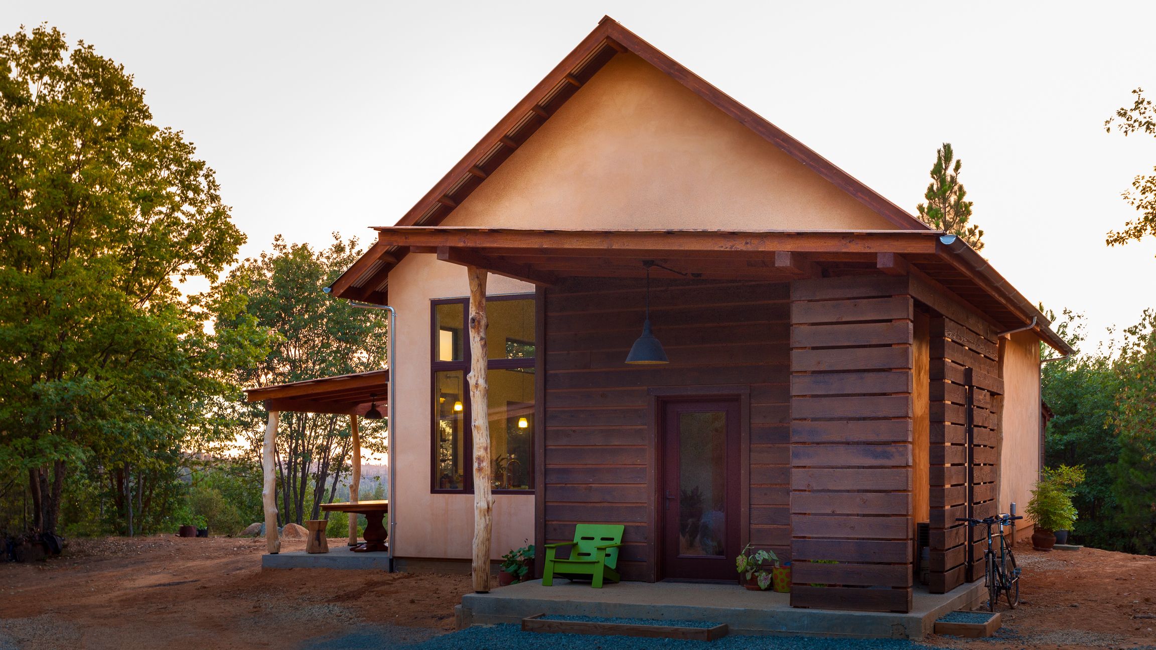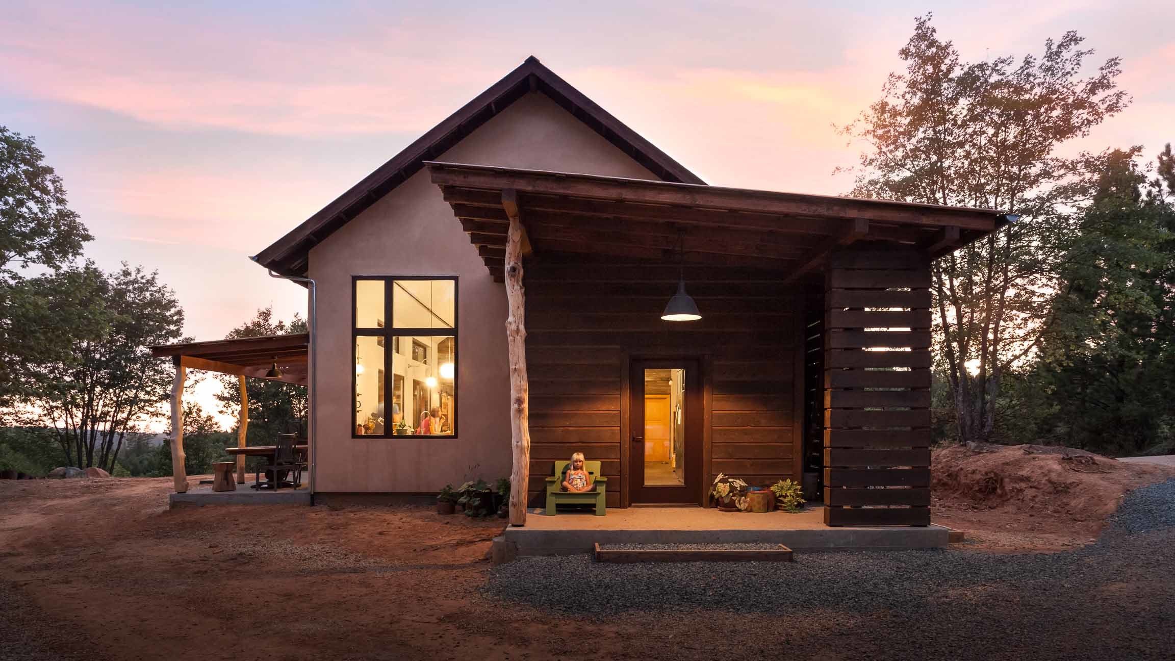 Ten mały, samowystarczalny dom, zaprojektowany przez Atmosphere Design Build, nawiązuje do zabudowań z czasów gorączki złota. Rodzina z Seattle chciała domu harmonizującego z naturą i górniczą spuścizną regionu, jednocześnie spełniającego współczesne standardy ekologicznego budownictwa.