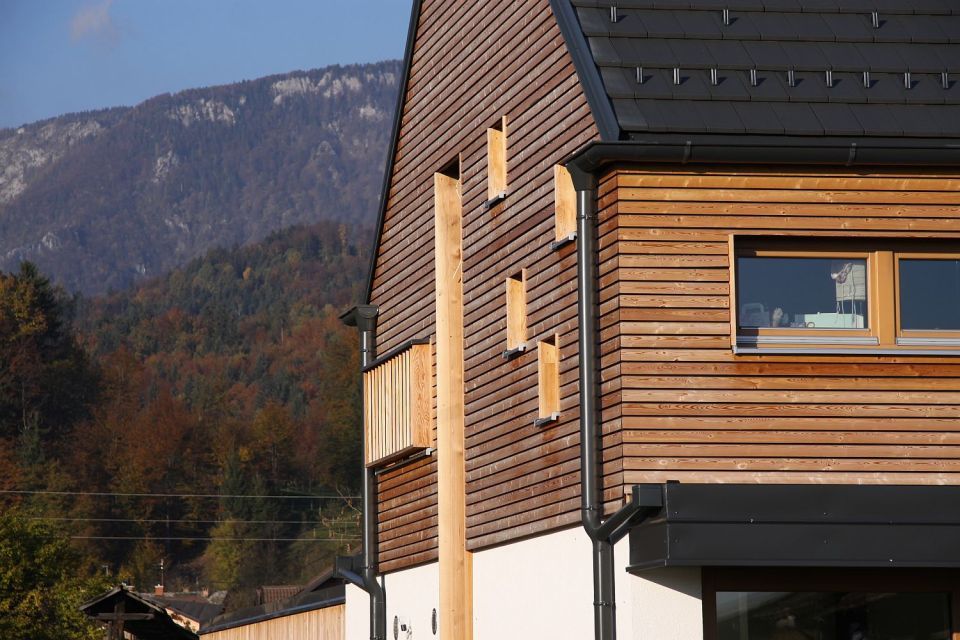 Prefabrykowane ściany i podłogi umożliwiły szybkie wzniesienie domu w kilka dni przy minimalnych odpadach i wysokiej wydajności energetycznej. Skromna bryła, nowoczesne detale i przemyślany układ wnętrza tworzą przestrzeń, w której wygoda łączy się z ekologią i funkcjonalnością. Projekt ten łączy tradycyjne elementy architektury lokalnej z innowacyjnym podejściem prefabrykacji, co sprawia, że dom jest doskonałym przykładem nowoczesnej stodoły – minimalistycznej, energooszczędnej i harmonijnie wpisanej w krajobraz słoweńskiej wsi.
