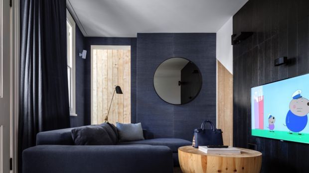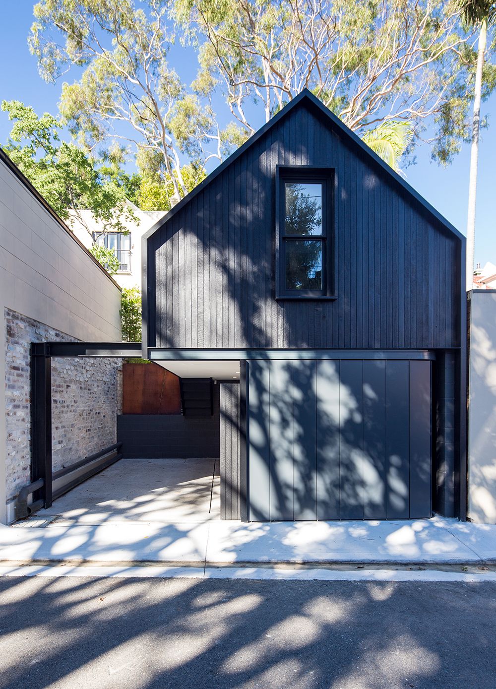 Zamiast przeszklonej fasady architekt zaprojektował dwukondygnacyjny ekran ze stali kortenowej, za którym ukryto duże przeszklenia zalewające wnętrze naturalnym światłem. Salon i antresola z gabinetem otwierają się na widok eukaliptusa, a podłoga z polerowanego betonu została uniesiona na wspornikach, by nie naruszyć systemu korzeniowego drzewa. Równie innowacyjny jest garaż: to, co wygląda jak pojedyncze drzwi od ulicy, w rzeczywistości jest zautomatyzowanym systemem umożliwiającym parkowanie nawet trzech samochodów. Dom, należący do dyrektora kreatywnego i jego żony, po gruntownej renowacji znacząco zyskał na wartości, stając się jednym z najbardziej zaawansowanych technologicznie i architektonicznie przykładów współczesnej przebudowy historycznej zabudowy.