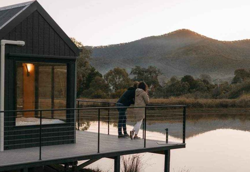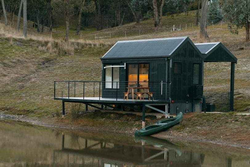 Ten urokliwy domek położony w zatoce Goughs to idealne połączenie komfortu wypoczynku i wyjątkowych wrażeń blisko natury. Duże panoramiczne okna pozwalają podziwiać zapierający dech w piersiach krajobraz – malownicze wzgórza, spokojną taflę jeziora i promienie wschodzącego słońca, które wypełniają wnętrze ciepłym światłem już od rana. To miejsce, które oferuje atmosferę porównywalną z obiektami typu nowoczesna stodoła, łącząc surowe piękno przyrody z subtelną elegancją i pełnym komfortem.
