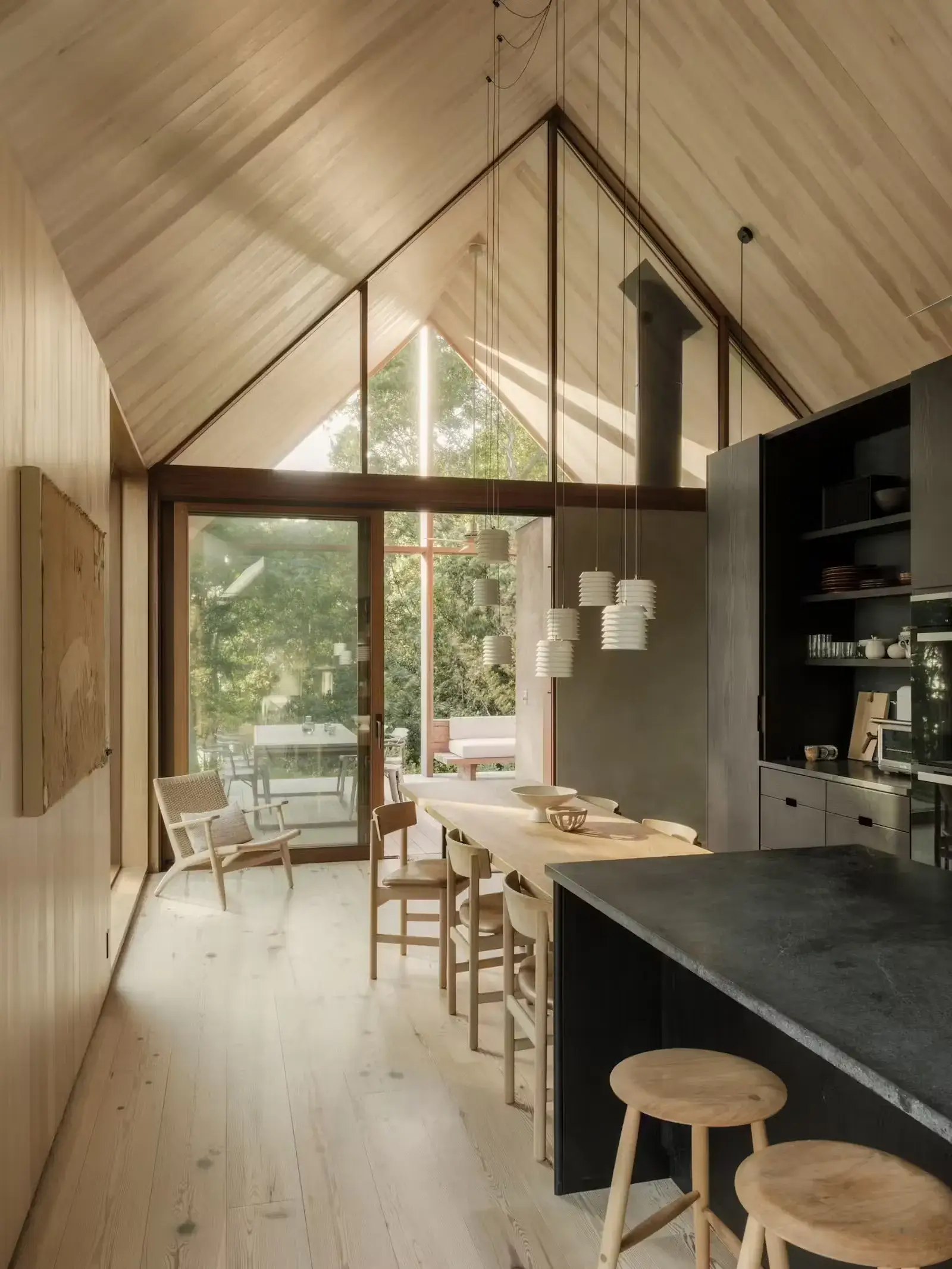 North Fork na Long Island znajduje się niecałe 130 km od Brooklynu, ale jest zupełnie inny, pełen farm, rustykalnych stodół i uroczych portów. Tutaj młoda rodzina postanowiła zbudować rodzinny kompleks, w którym można odpocząć, nabrać sił i połączyć się z lądem.