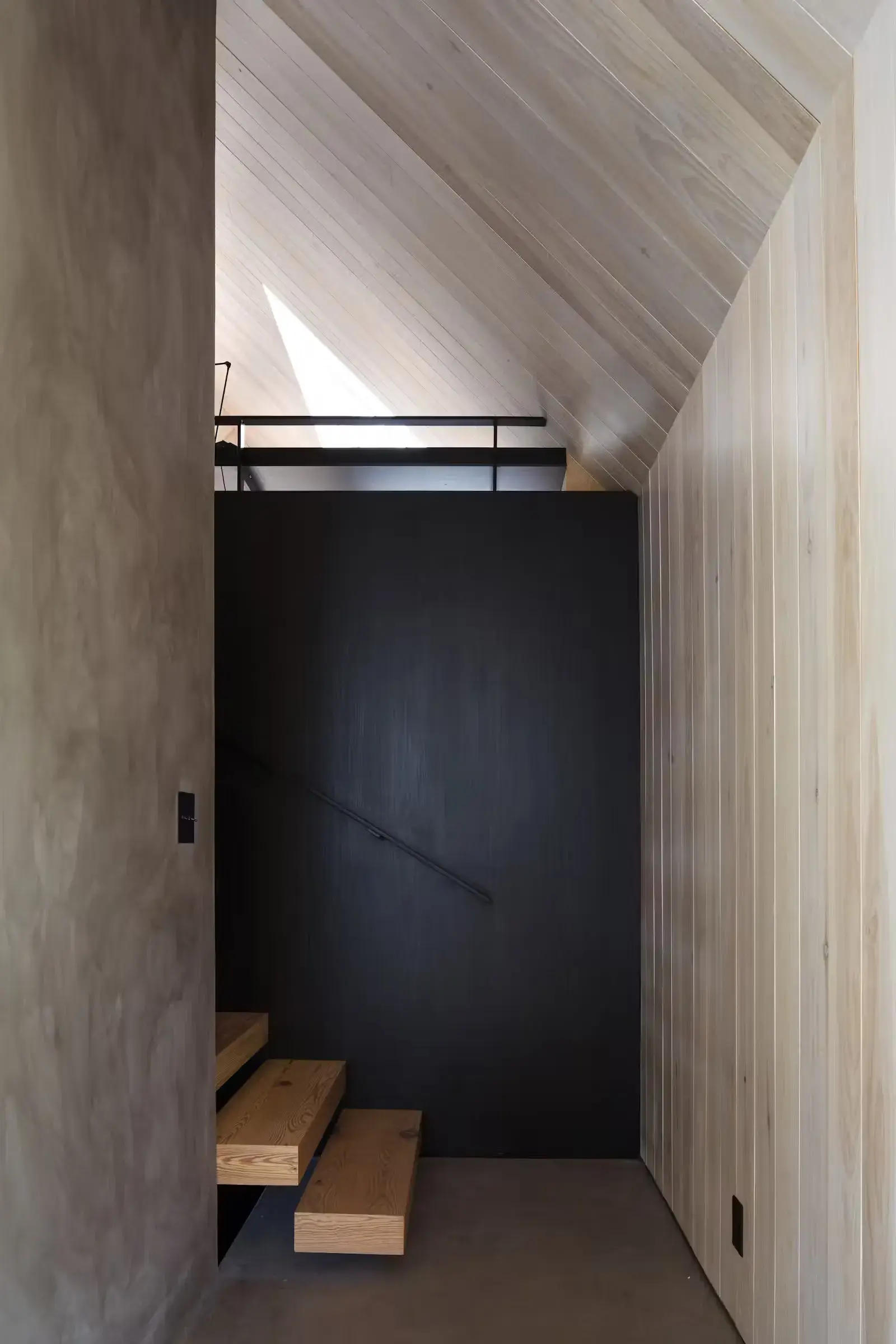 Wewnątrz konstrukcje wykorzystują lokalną paletę materiałów z odsłoniętymi drewnianymi podłogami i sufitami. Ponieważ North Fork ma tradycję obróbki drewna i stolarki, a także mnóstwo prostych drewnianych konstrukcji stodół, użycie drewna w całym obiekcie było jak najbardziej sensowne.