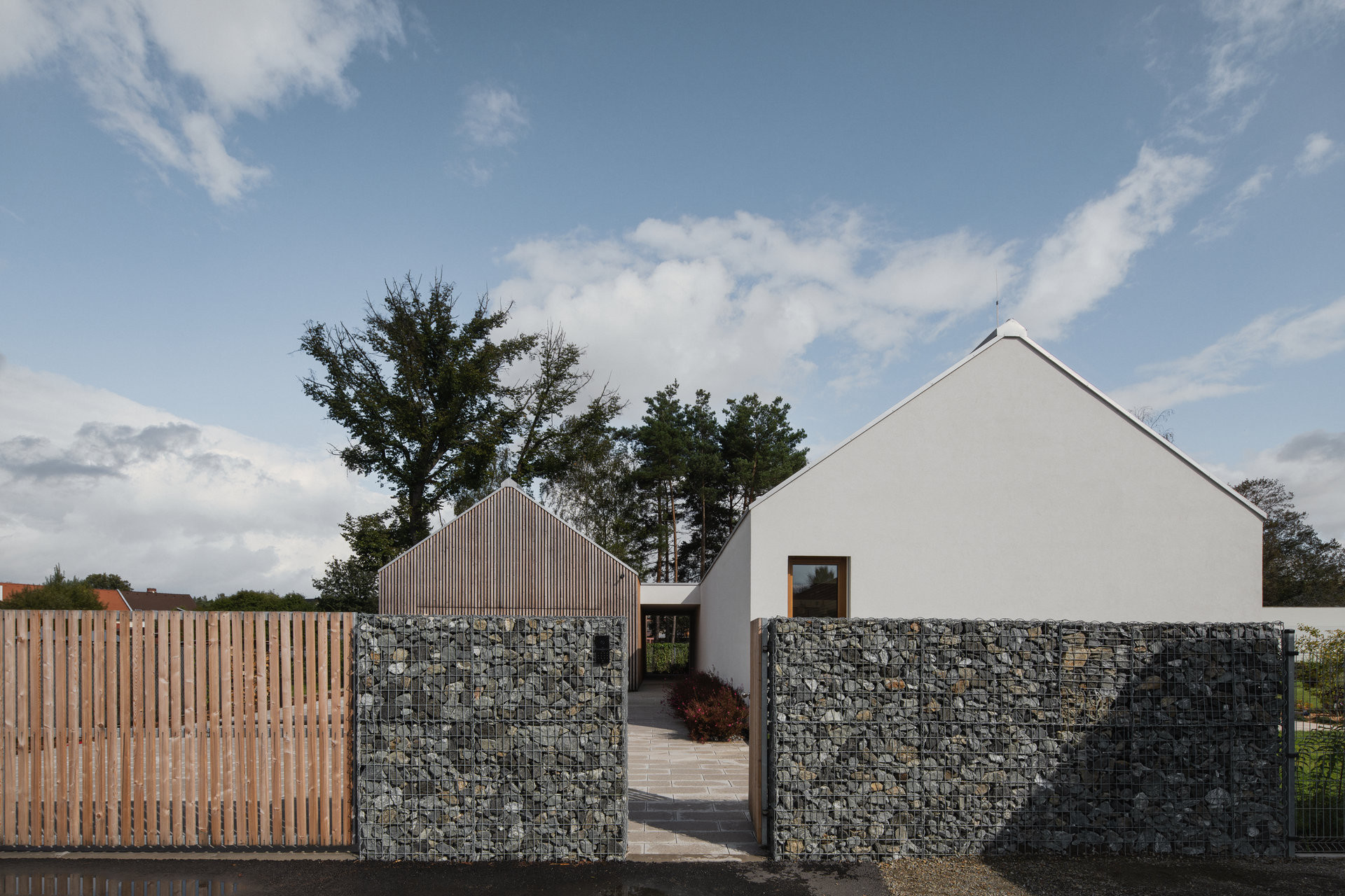 Okoliczna zabudowa Nové Vsi zdominowana jest przez domy z dachami dwuspadowymi. Architekci zdecydowali się kontynuować ten motyw, projektując budynek o prostej, powściągliwej formie i starannie dobranych proporcjach.
