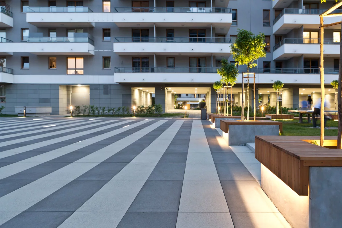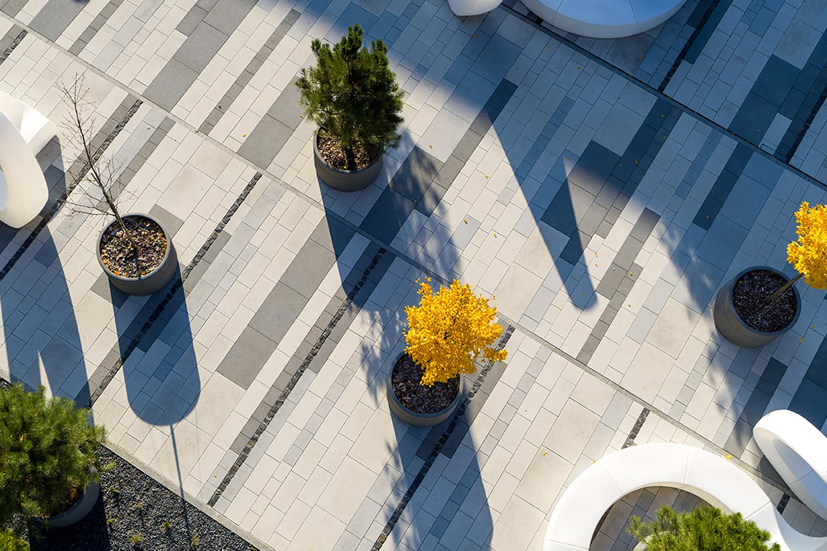 Nowoczesna architektura wymaga spójnego otoczenia. Prosta forma budynków w przestrzeni publicznej aż prosi o geometryczne i uporządkowane rozwiązania w aranżacji nawierzchni. Właśnie takie możliwości daje system płyt brukowych Novator® City – minimalistyczny, elegancki i funkcjonalny.