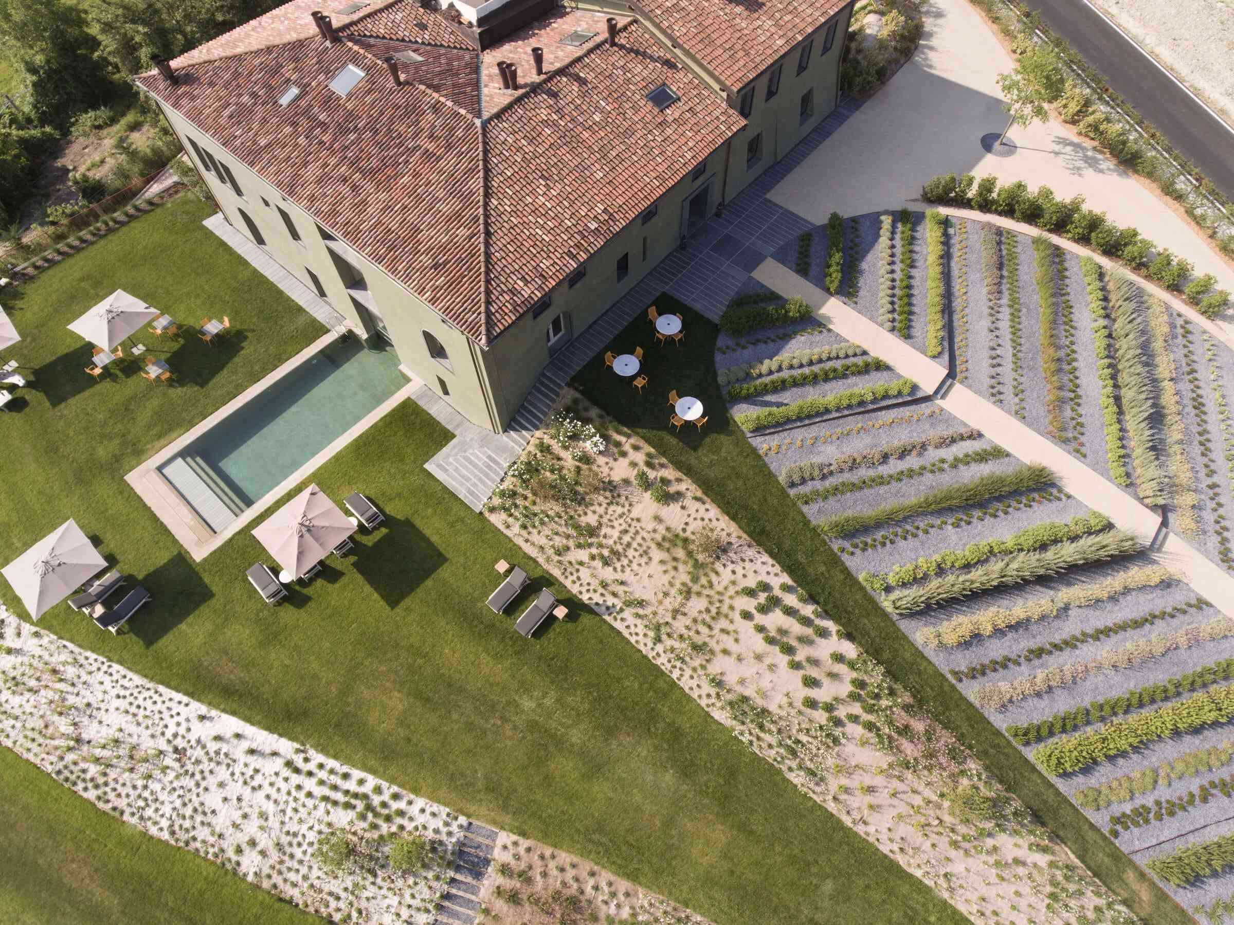 W pensjonacie znajdują się 2 apartamenty i 10 zróżnicowanych pokoi, strefa wellness ze spa i basenem, siłownia, sklep z produktami rolnymi oraz przestrzenie restauracyjne. Choć obiekt nie przypomina klasycznej nowoczesnej stodoły, czerpie z jej filozofii: prostoty, funkcjonalności, zrównoważonej architektury oraz bliskiej relacji z otoczeniem. Locanda La Raia to kwintesencja życia w rytmie slow life – luksusu bez ostentacji, zakorzenionego w krajobrazie włoskich wzgórz.