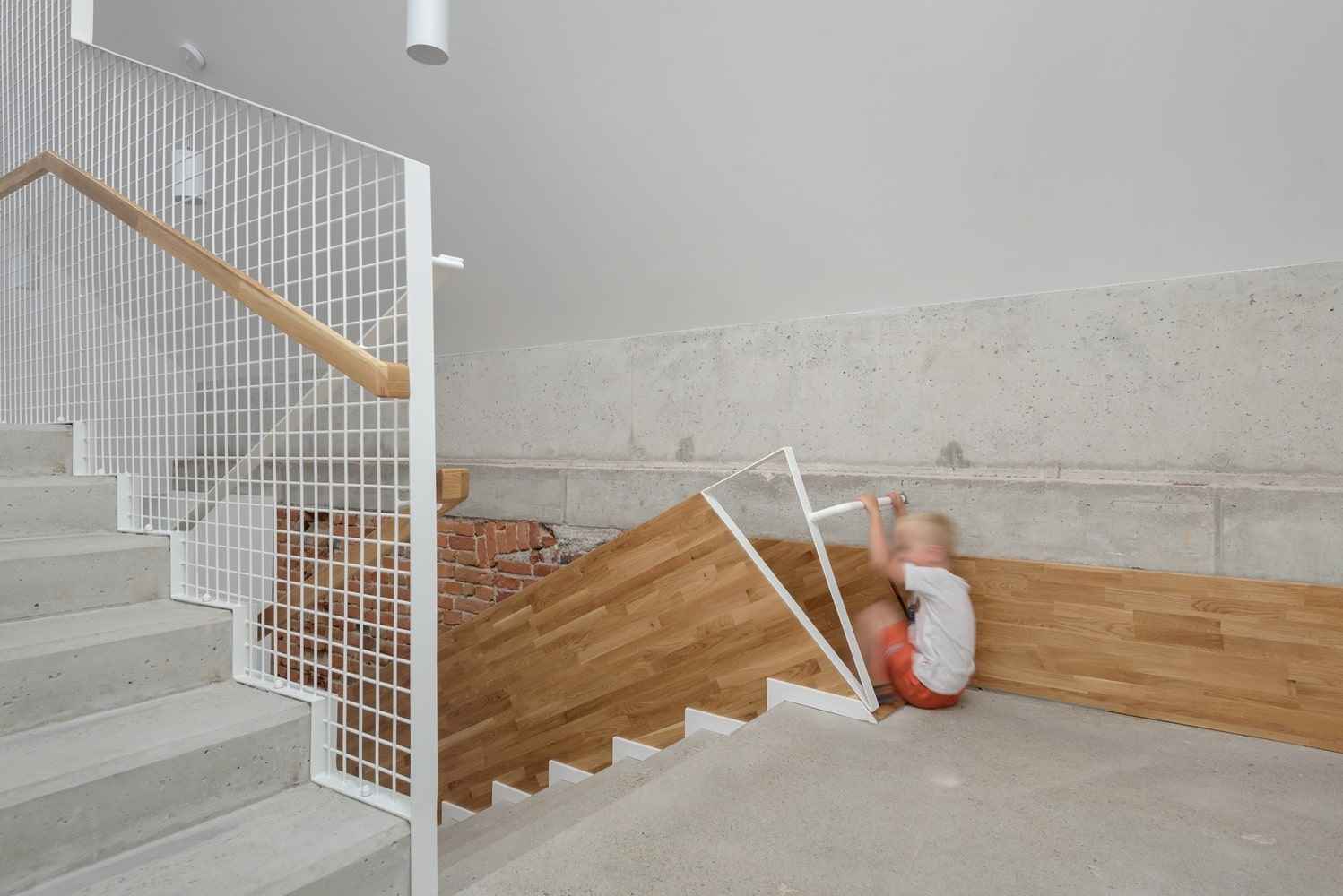 Elewacje i wnętrza przedszkola łączą w sobie surowość materiałów z ciepłem naturalnych faktur. Widoczne fragmenty cegły, nadproży i betonowych struktur nie tylko opowiadają historię miejsca, ale też pobudzają wyobraźnię dzieci. Architekci postawili na naturalność i prostotę, tworząc przestrzeń wyciszenia – kontrastującą z hałaśliwym, przepełnionym bodźcami światem zewnętrznym. Przedszkole w Opolu to dowód, że współczesna architektura edukacyjna może być piękna, funkcjonalna i przyjazna, zachowując równowagę między tradycją a nowoczesnością, tak jak w projektach typu nowoczesna stodoła.