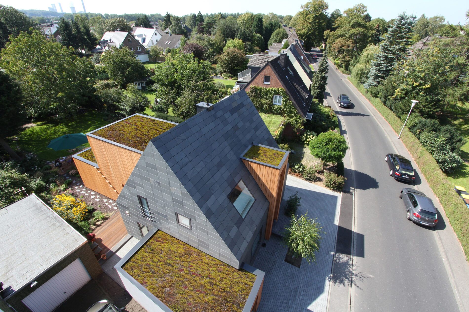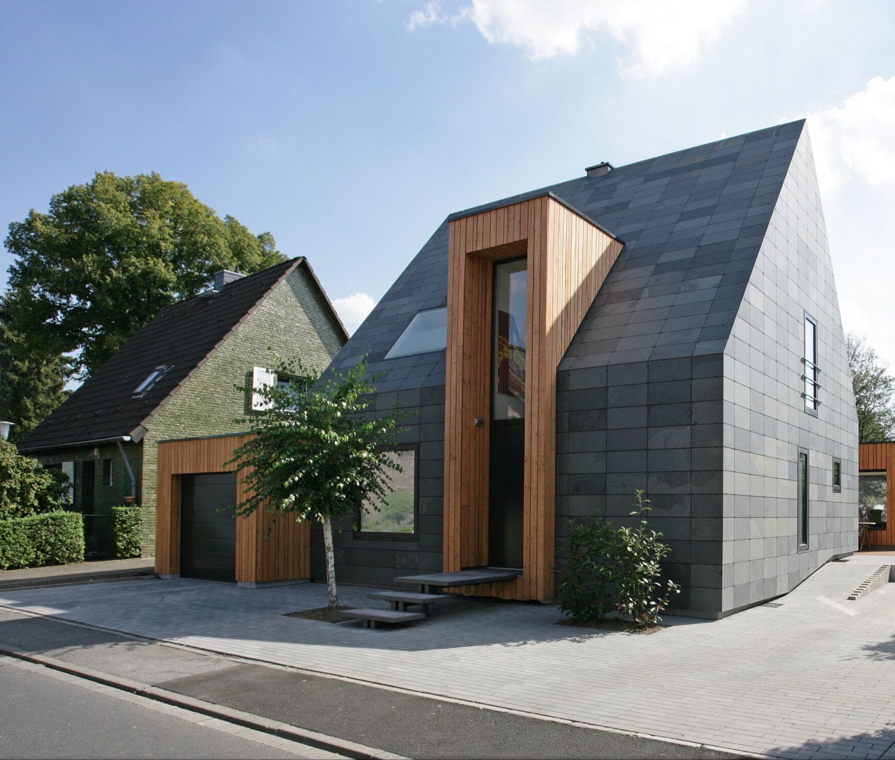 W odpowiedzi na potrzebę modernizacji swojego domu, architekt postanowił sięgnąć po rozwiązanie, które pozwoli mu połączyć tradycyjną formę zabudowy z nowoczesnym wyrazem architektonicznym. Zainspirowany naturalnym pięknem łupka, postanowił stworzyć projekt, w którym ten wyjątkowy materiał odegra główną rolę – zarówno na dachu, jak i elewacjach. Efektem jest spektakularna transformacja starego budynku w nowoczesny dom o charakterze monolitu, zbudowanego w pełnej zgodzie z otoczeniem i lokalnym kontekstem.