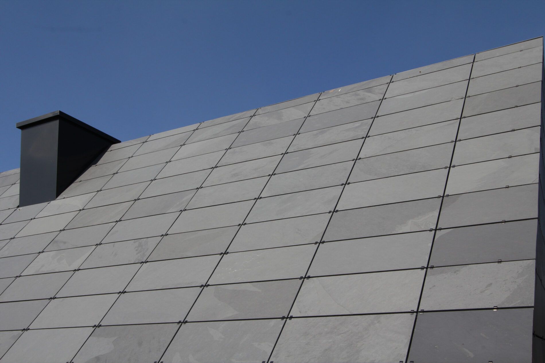Łupek jako materiał nadaje elewacji wyjątkową głębię i charyzmę – dzięki naturalnym odcieniom, nieregularnym powierzchniom i unikalnym refleksom światła. Każda płytka jest niepowtarzalna, co sprawia, że budynek zmienia się wraz z porami roku i porą dnia – od chłodnych błękitów i grafitów po ciepłe szarości i subtelne zielone refleksy.