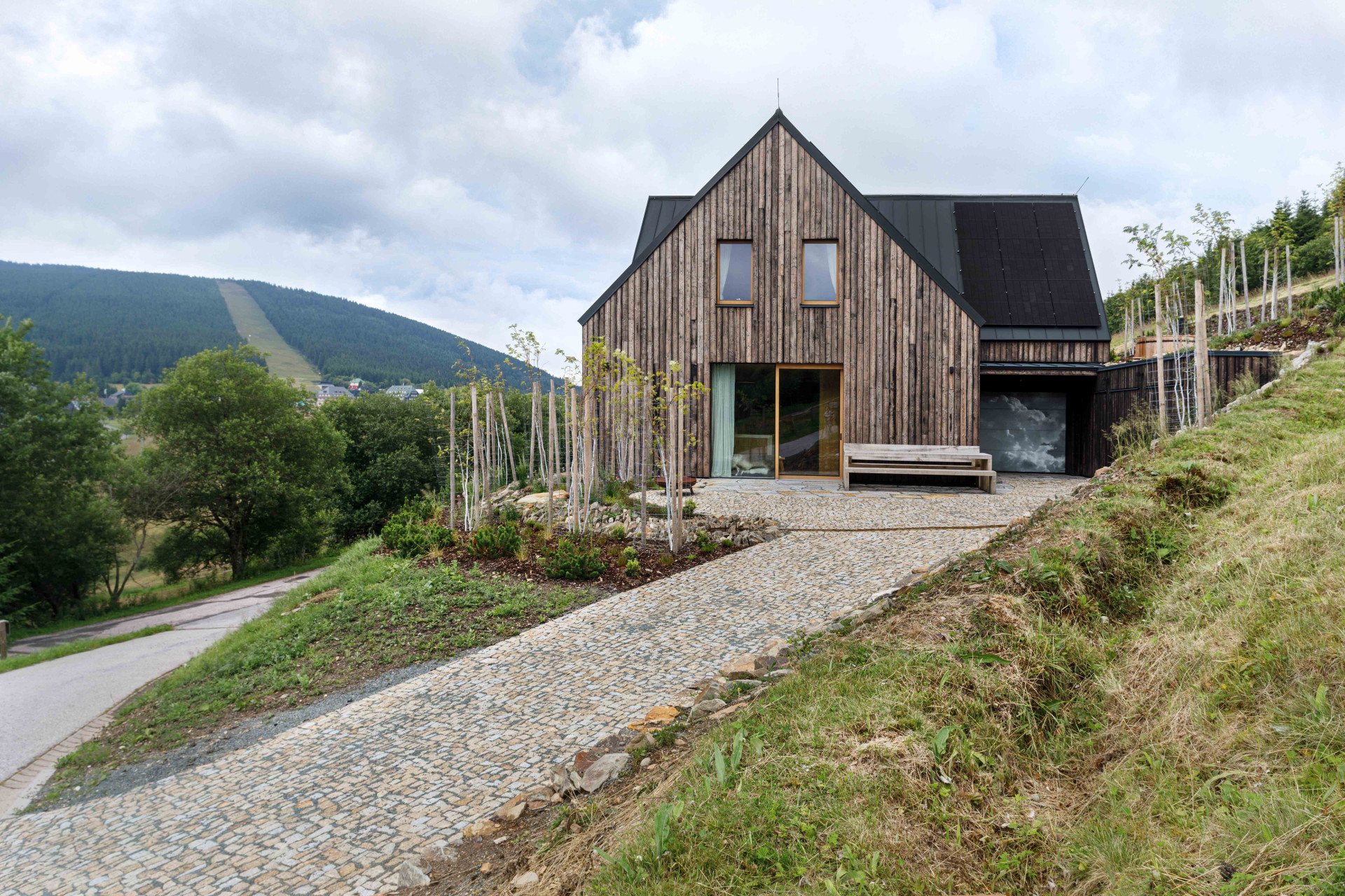 Projekt stworzyło studio OK PLAN ARCHITECTS, a konkretnie jego założyciel Luděk Rýzner, który zaprojektował dom dla siebie i swojej rodziny. Miał już doświadczenie w pracy w tej okolicy, ponieważ stworzył tu kilka projektów, w tym ikoniczną Chatę Hradečanka.