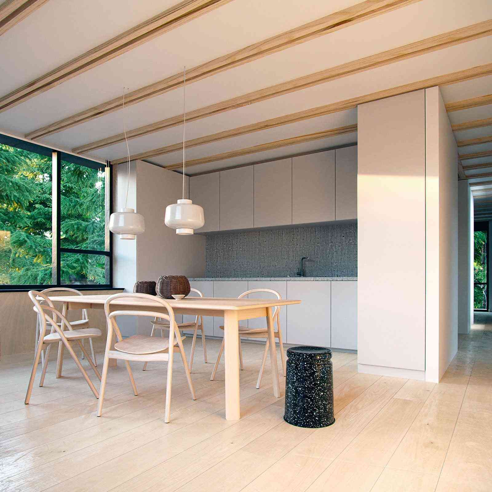 Projekt o powierzchni 200 m² oferuje aż trzy przestronne sypialnie i dwie łazienki, zapewniając wygodę dla całej rodziny. Na piętrze znajduje się salon z panoramicznym widokiem, który stanowi serce domu – miejsce spotkań, relaksu i wspólnego spędzania czasu. To idealna propozycja dla tych, którzy marzą o życiu w stylu slow, blisko natury, w przestrzeni łączącej tradycję i nowoczesność.