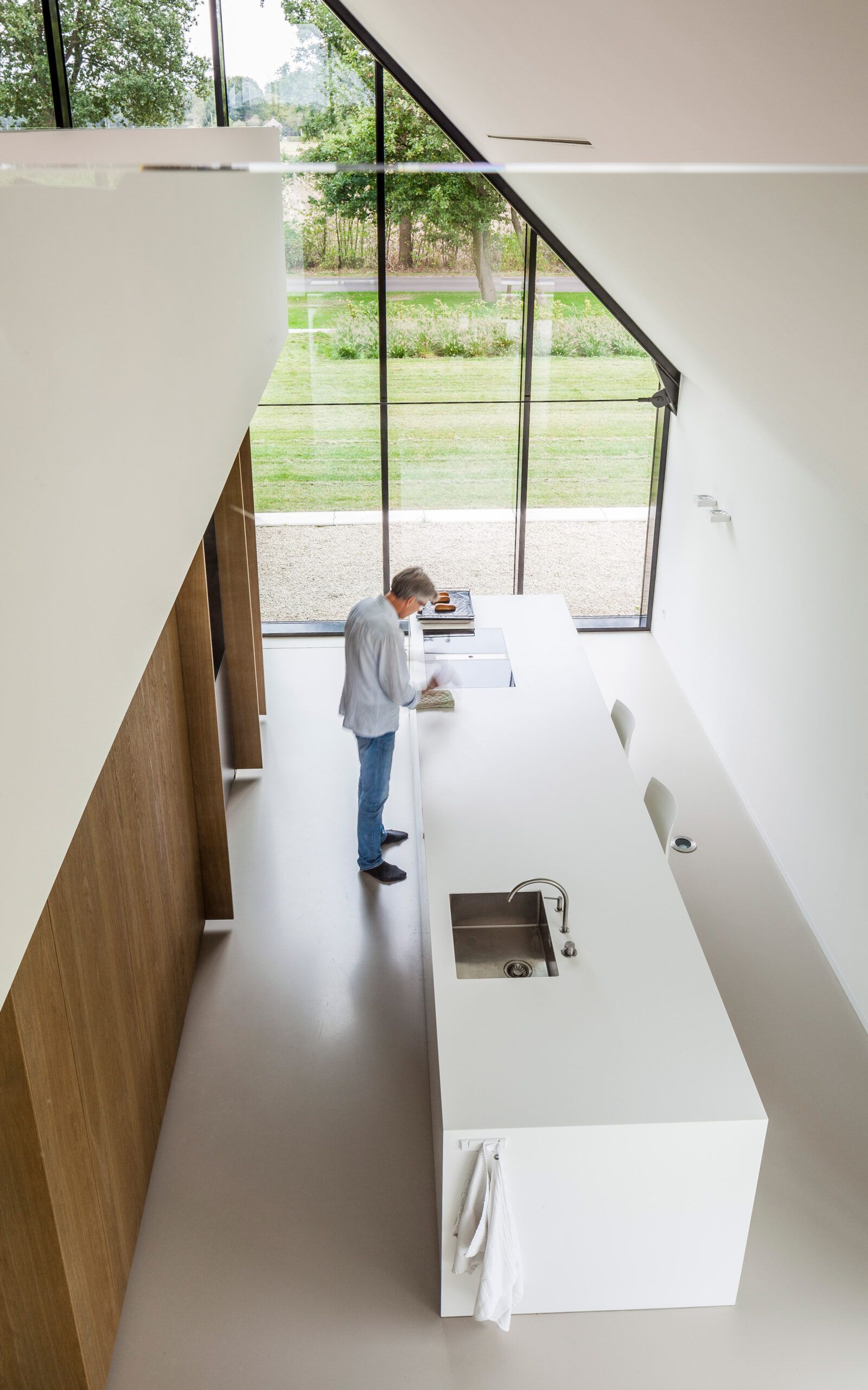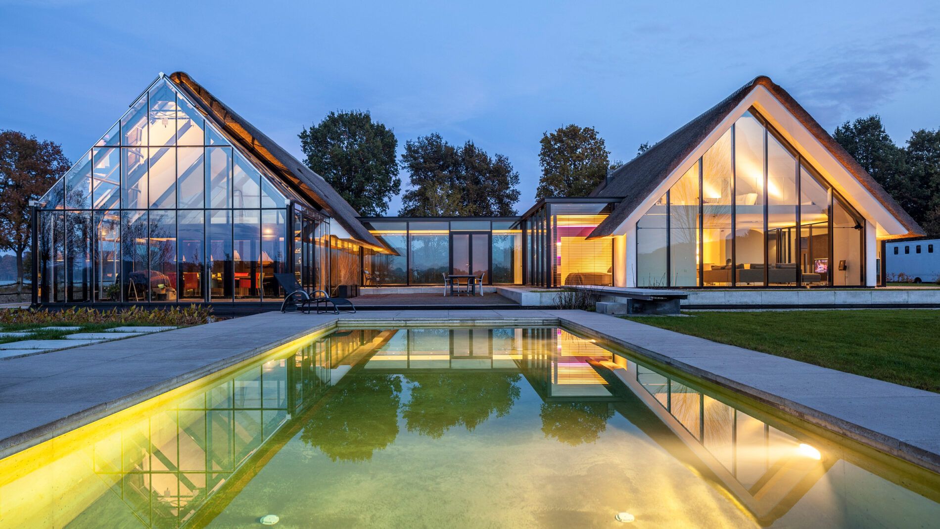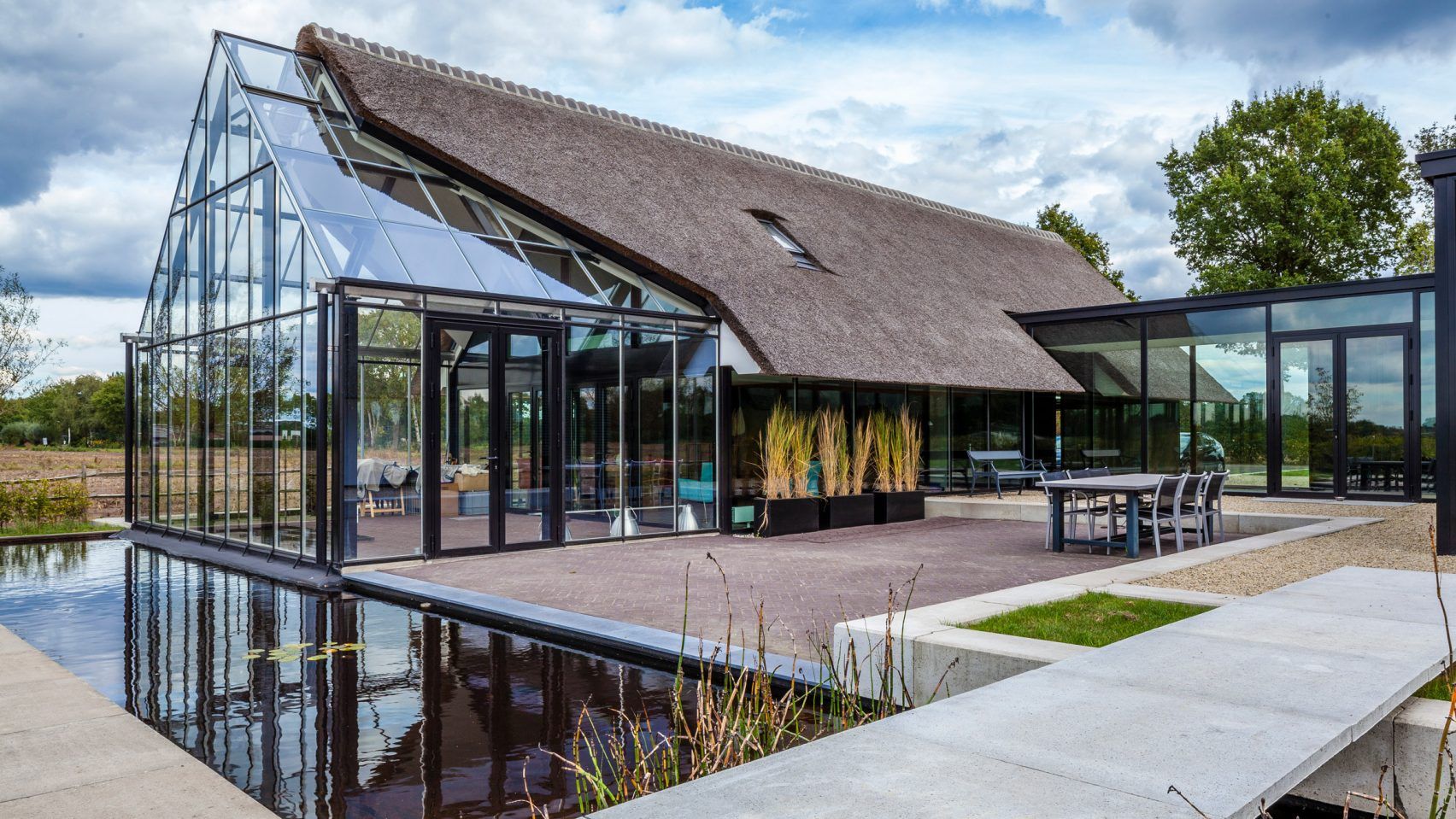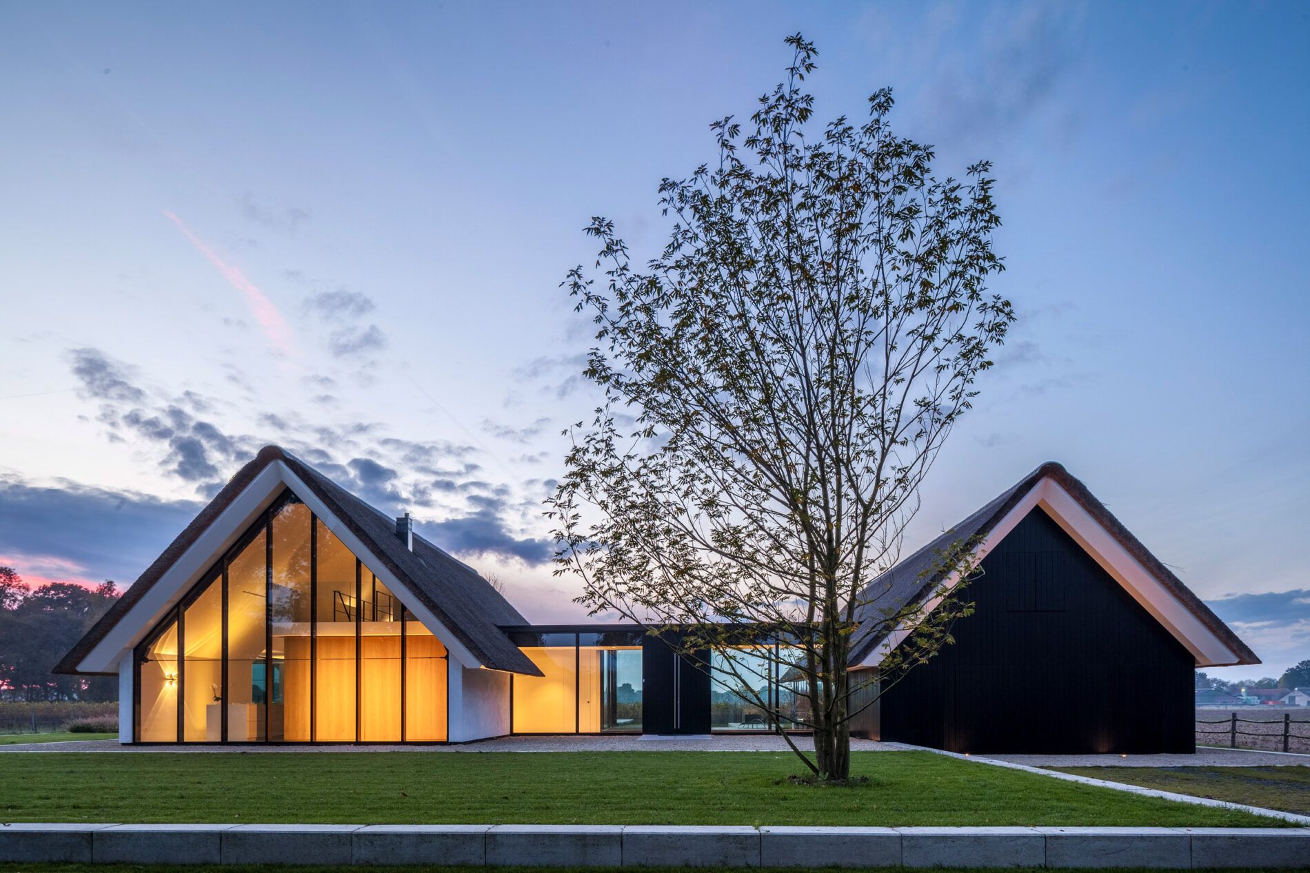 Spod krytego strzechą, dwuspadowego dachu wysuwa się szklany element, który na pierwszy rzut oka przypomina swym wyglądem tradycyjną szklarnię. W tym przypadku stanowi on jednak nowoczesną część willi. Architekci zaprojektowali ten dom z myślą o konkretnym miejscu, które wyłania się z wiejskiego krajobrazu na skraju miasta Berlicum w holenderskiej prowincji North Brabant. Projekt miał połączyć regionalne formy z nowoczesnymi detalami.