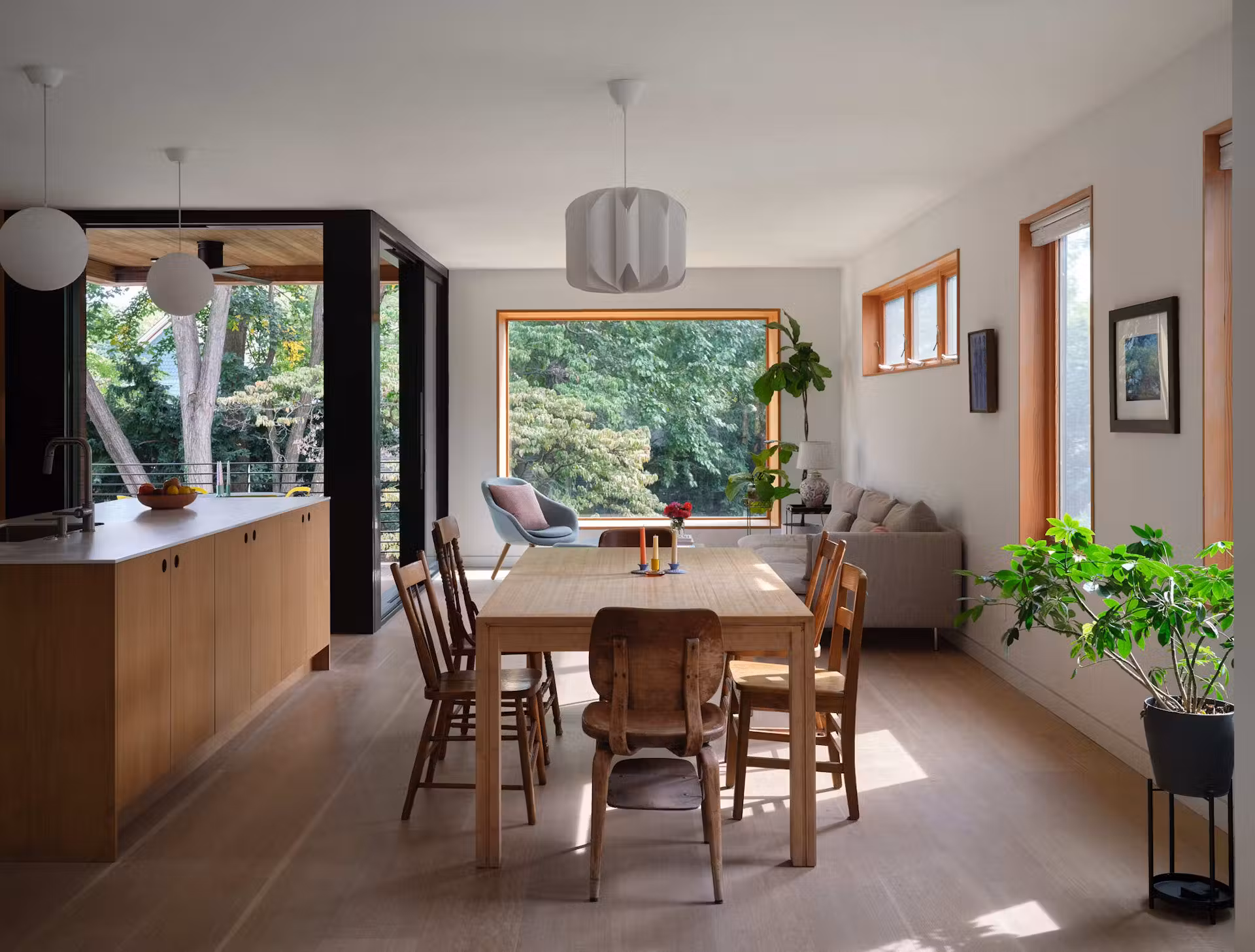 Dzięki kompleksowej renowacji dom w Silver Spring stał się miejscem, które łączy nowoczesność z naturą, funkcjonalność z estetyką i rodzinne potrzeby z minimalistycznym designem. Nowoczesna stodoła, jak określają go właściciele, oferuje przemyślaną przestrzeń, w której światło, drewno i prostota tworzą idealne warunki do życia.