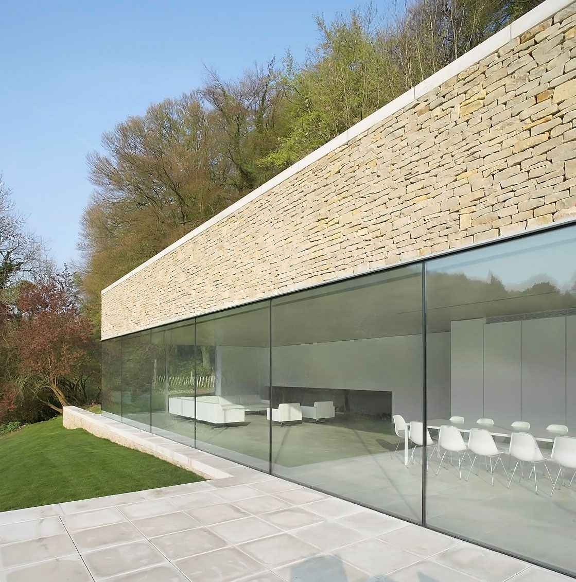 Architekci z Found Associates zadbali o to, by bryła budynku była subtelna, a jednocześnie funkcjonalna. Wnętrza otwierają się na otoczenie dużymi przeszkleniami, które wprowadzają naturalne światło i podkreślają związek domu z naturą. Dzięki temu projekt jest doskonałym przykładem, jak elegancka nowoczesna stodoła może stać się komfortowym, prywatnym azylem w jednym z najpiękniejszych regionów Anglii.