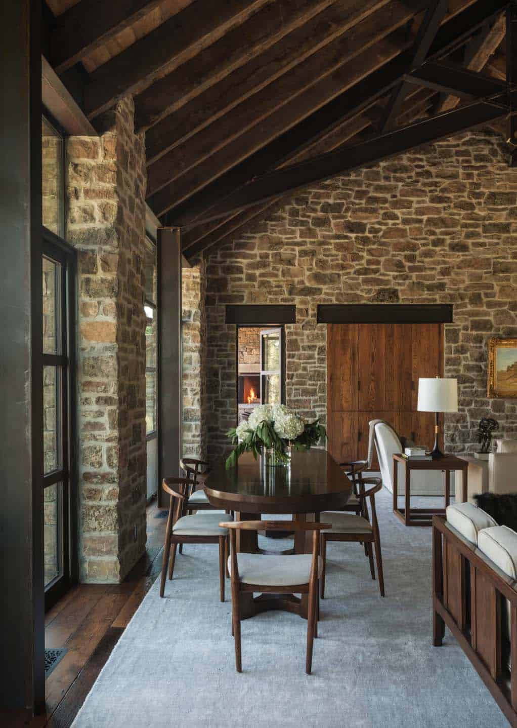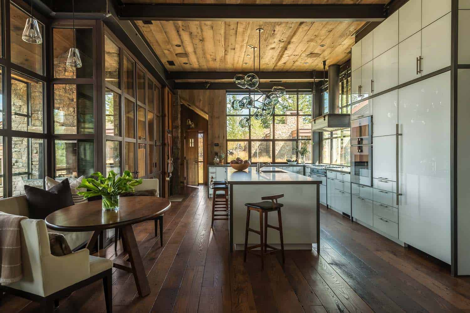 Rezygnacja z klasycznej jadalni na rzecz kilku kameralnych stref do wspólnego spożywania posiłków, w tym na zewnątrz, odpowiada potrzebom nowoczesnego stylu życia. Każda część domu została zaprojektowana z myślą o maksymalnym kontakcie z naturą – widoczne jest to m.in. w łazience przy sypialni głównej, gdzie duże lustra zastąpiono panoramicznymi oknami z widokiem na góry. Projekt został wyróżniony tytułem „Dom Roku 2016” przez magazyn Mountain Living, jako doskonały przykład nowoczesnej architektury wiejskiej, w której funkcjonalność, estetyka i krajobraz tworzą spójną całość.