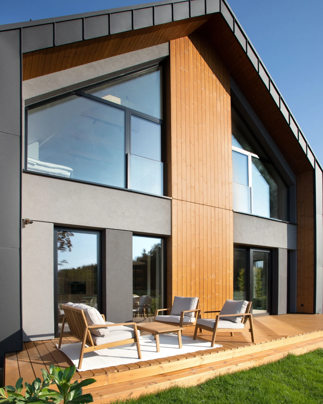 Bryła naszych domów odzwierciedla filozofię nowoczesnej stodoły – prostota formy, duże przeszklenia i wykorzystanie naturalnych materiałów. Wnętrza charakteryzują się przestronnością, wysokimi sufitami i przemyślanym układem, który zapewnia optymalne doświetlenie pomieszczeń. Salon połączony z otwartą kuchnią tworzy centralny punkt domu, a panoramiczne okna pozwalają cieszyć się widokiem na otaczający las.