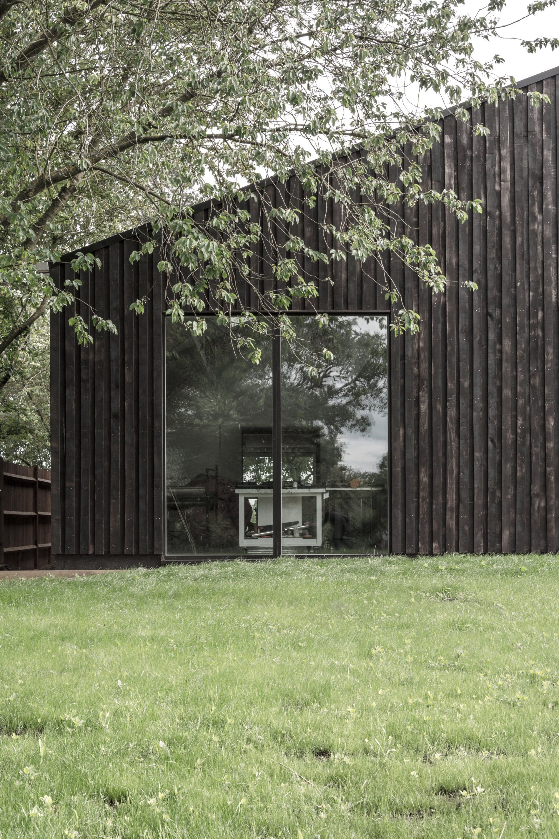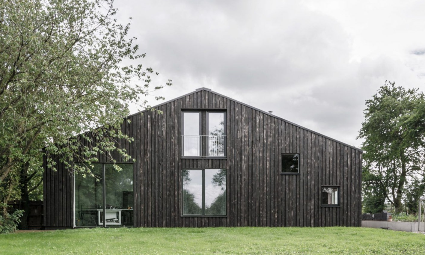 Studio HeathWalker zrealizowało wyjątkową przebudowę stodoły w hrabstwie Hertfordshire we wschodniej Anglii, przekształcając dawny budynek gospodarczy w komfortowy, współczesny dom jednorodzinny. Nowa elewacja została wykonana z drewna pozyskanego bezpośrednio z drzew rosnących na tej samej posesji, a następnie zakonserwowanego metodą opalania, co nadało bryle surowy, naturalny charakter. Projekt nazwany „Szopa ciągników” powstał dla artysty zafascynowanego otwartymi krajobrazami, przestrzenią i estetyką, jaką oferuje nowoczesna stodoła, przy jednoczesnej potrzebie kameralnych, ukrytych wnętrz.