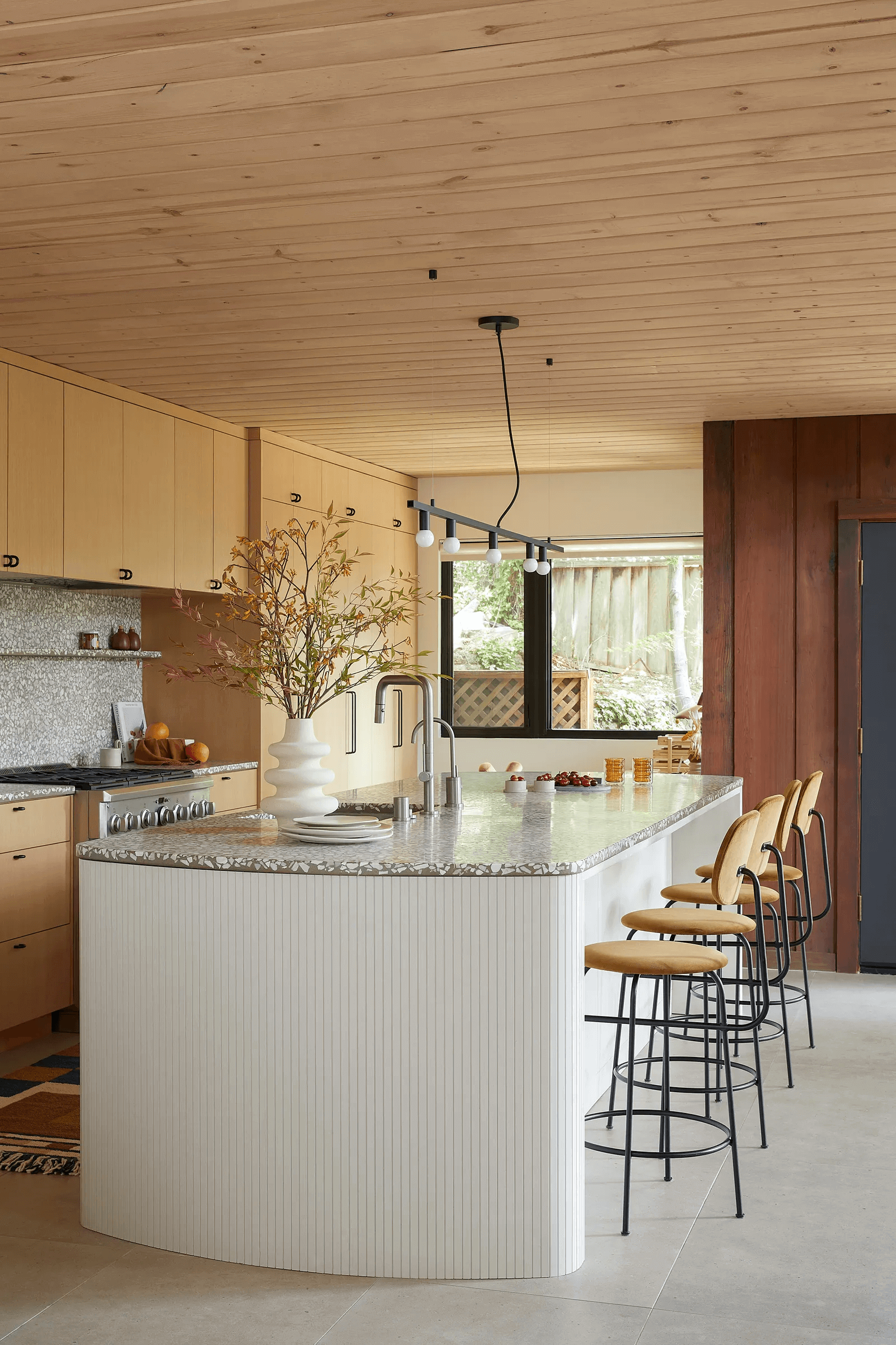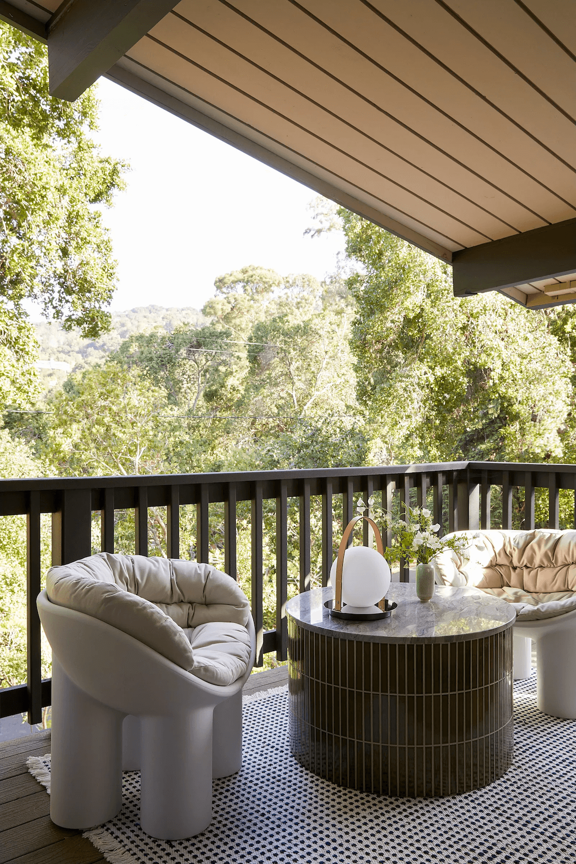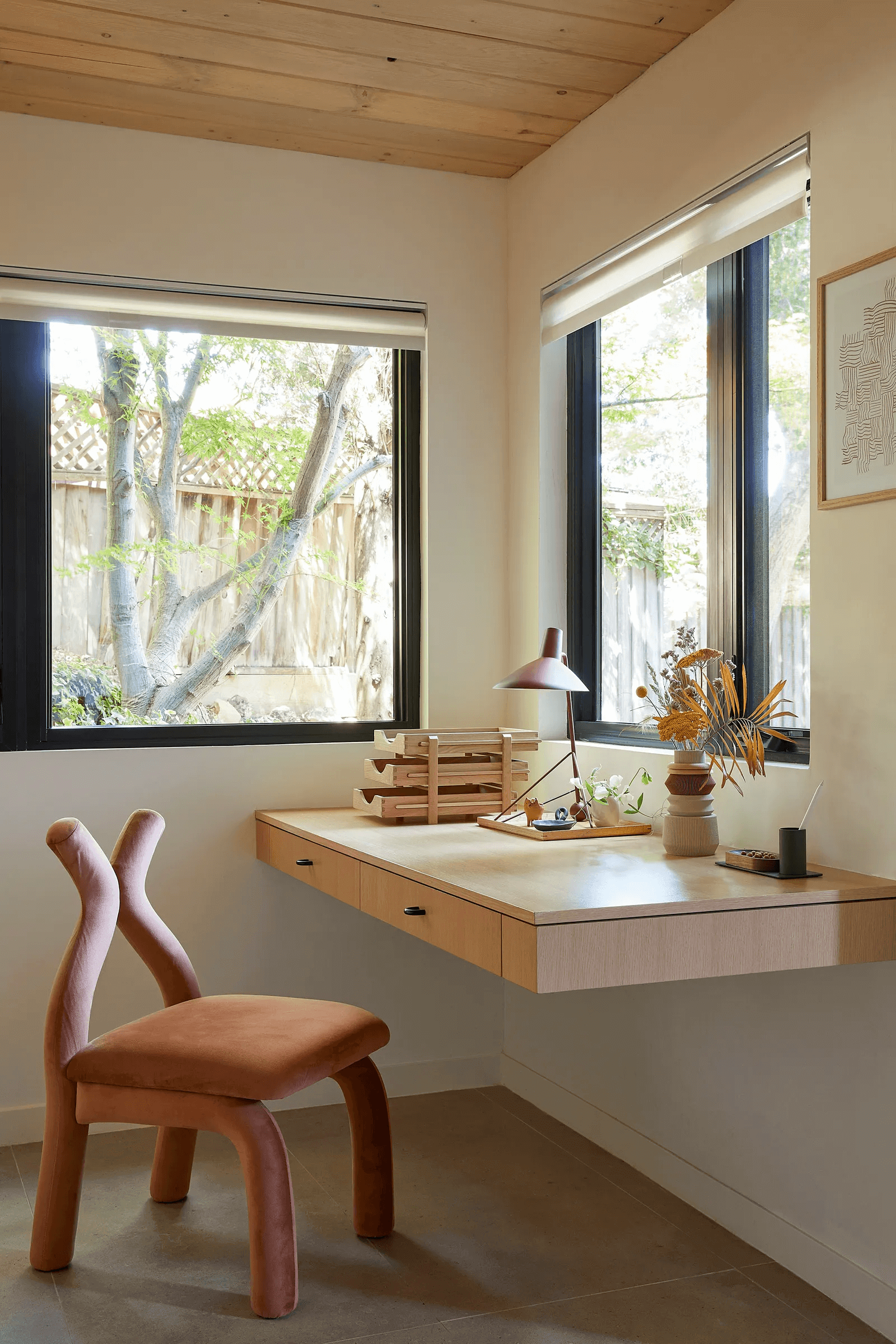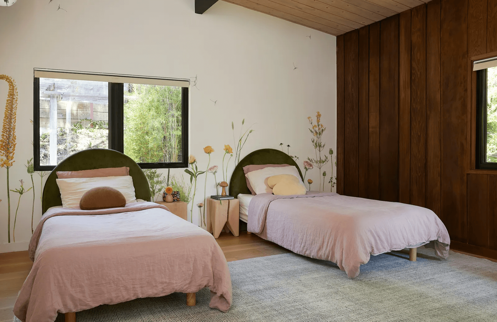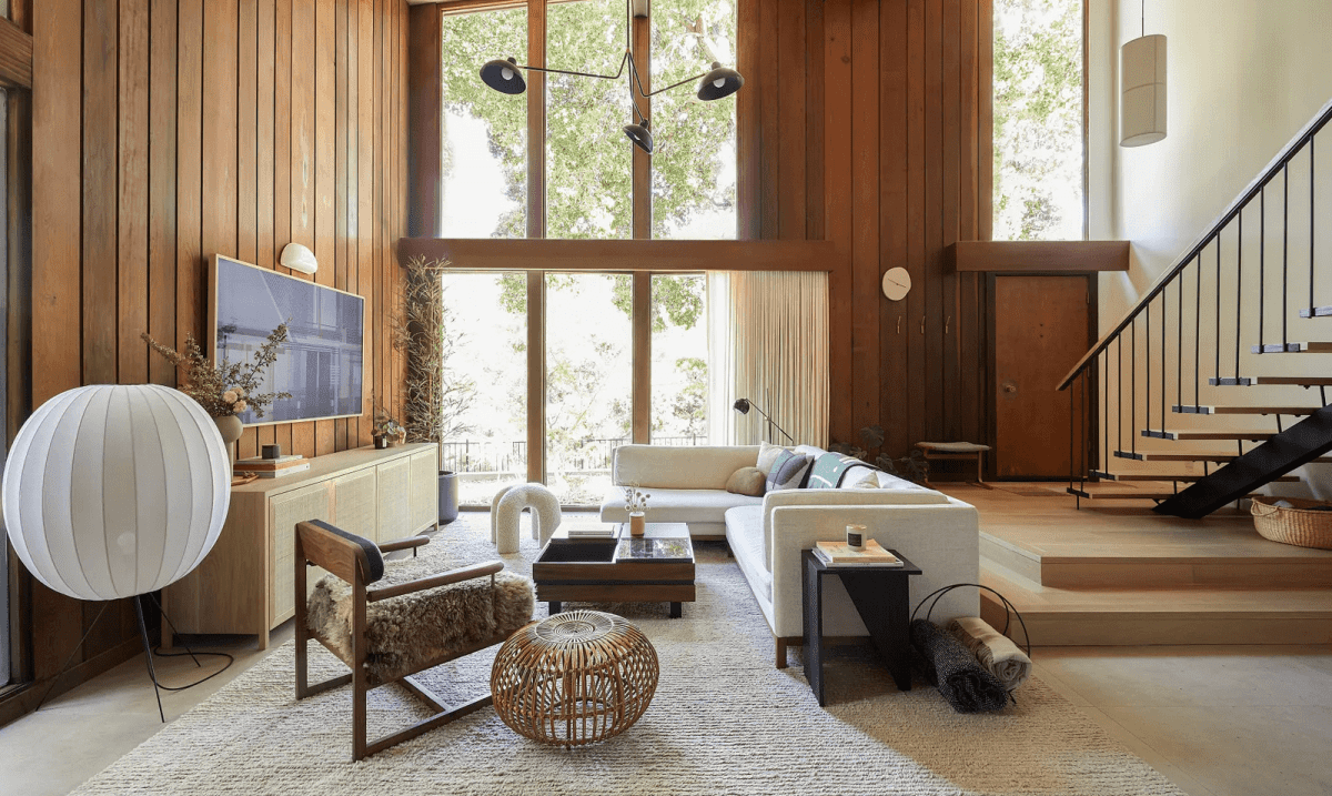 W 2020 roku, podobnie jak wielu innych rodziców, Hong i jej mąż pracowali z domu, mając trójkę uczniów i małe dziecko. Zrozumieli, że potrzebują więcej przestrzeni. „Nagle mój dom wydał mi się bardzo mały” – wspomina. Po sprzedaży rancza w San Jose agent nieruchomości znalazł im idealny dom z 1960 roku, który posiadał efektowne okna sięgające od podłogi do sufitu, sufity o podwójnej wysokości, otwartą klatkę schodową oraz sekwoję w całym budynku. Był jednak w bardzo złym stanie: pełen przecieków i „nienadający się do zamieszkania”, jak to ujęła Hong. Mimo to, nie przeszkodziło to projektantce. „Kiedy weszliśmy z mężem, pomyśleliśmy: «Och. Chcemy ten dom!» Wiedzieliśmy.”