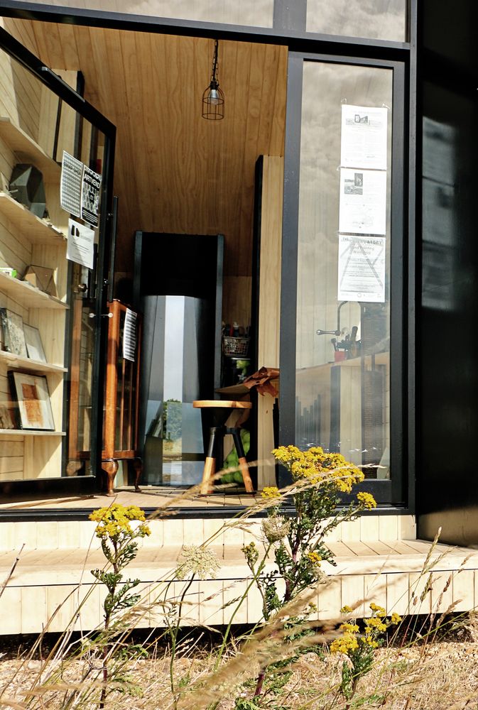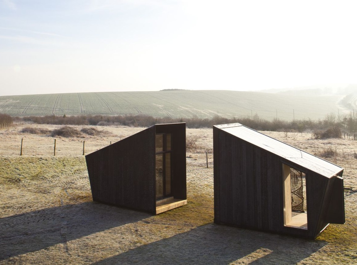 Zewnętrzne elewacje wykonano z ciemnych, opalanych paneli drewnianych metodą Shou Sugi Ban, kontrastujących z jasnym drewnem wewnątrz. Obserwatorium wyposażono w piec opalany drewnem, panele słoneczne generujące energię dla urządzeń elektronicznych oraz system gromadzenia wody deszczowej, czyniąc je w pełni samowystarczalnym i ekologicznym. W ciągu dwóch lat mobilne studio odwiedziło cztery lokalizacje w południowej Anglii, goszcząc dwunastu artystów przez dwu-miesięczne rezydencje, a łączna liczba odwiedzających przekroczyła pół miliona. Ten projekt łączy w sobie funkcjonalność warsztatu, możliwość pracy artystycznej w plenerze oraz estetykę nowoczesnej stodoły, tworząc inspirującą przestrzeń do twórczej aktywności.