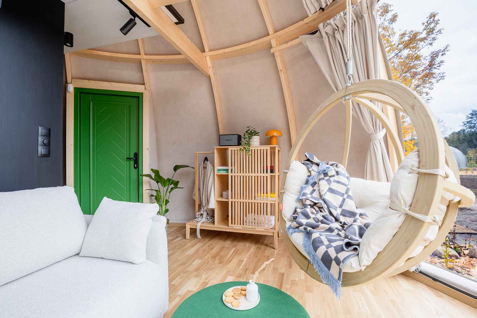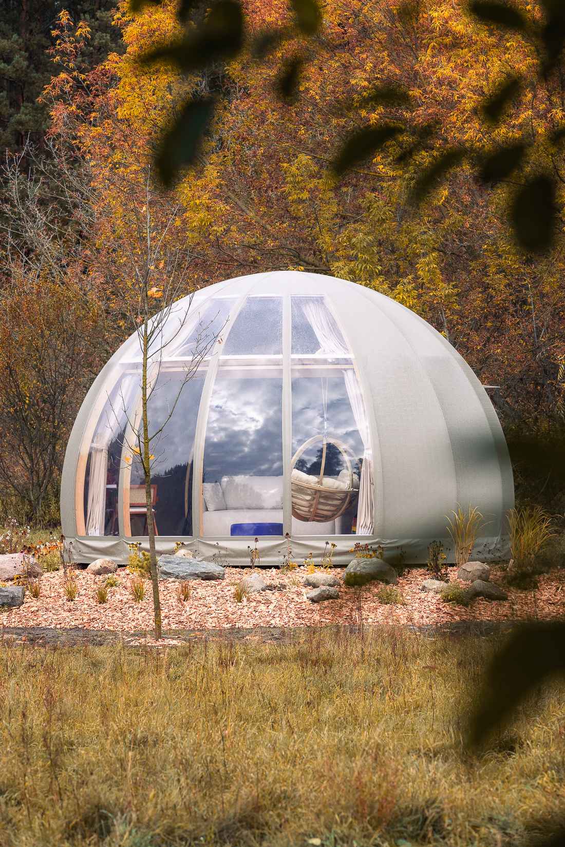 Domki kopułowe Glampo to całoroczne przestrzenie stworzone z myślą o komforcie, estetyce i świadomym wypoczynku. To, co wyróżnia je na tle innych obiektów, to autorski system HVAC – rozwiązanie, które dba o idealny mikroklimat niezależnie od pory roku. Utrzymuje optymalną wilgotność i stale dostarcza świeże powietrze,