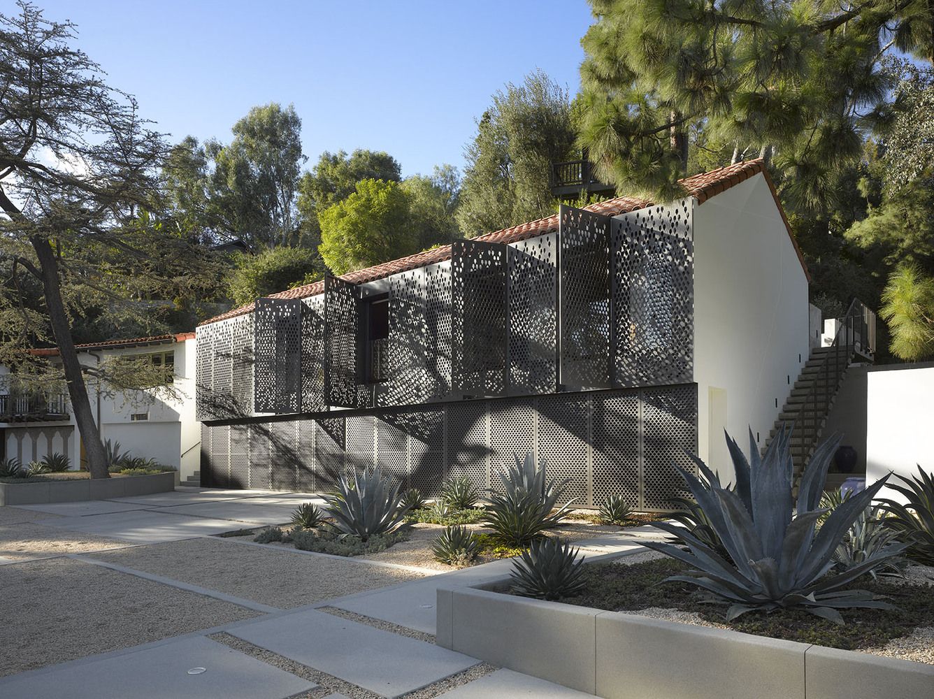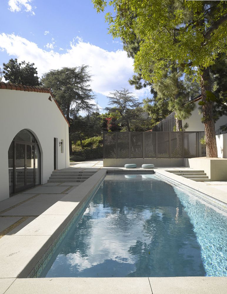 Ten projekt był wyjątkową okazją do renowacji historycznego budynku mieszkalnego w Los Angeles, zaprojektowanego w latach 20. XX wieku przez Wallace’a Neffa, jednego z najważniejszych architektów południowej Kalifornii. Dom zlokalizowany w prestiżowej dzielnicy Los Feliz przeszedł kompleksową modernizację, obejmującą odnowienie wnętrz pokoju rodzinnego, rekonstrukcję sklepień sufitowych oraz wyburzenie północnej ściany, aby stworzyć nowe, bardziej otwarte wejście do budynku. Starannie zaprojektowana aranżacja przestrzeni zewnętrznej, dopasowana do klimatu południowej Kalifornii, została uzupełniona o nowy basen, wyłożony płytkami pochodzącymi z historycznego Jackling House autorstwa George’a Washingtona Smitha – dawnej posiadłości Steve’a Jobsa. Całość stanowi przykład świadomego dialogu między dziedzictwem architektonicznym a współczesnym podejściem do projektowania, bliskiego estetyce znanej także z realizacji typu nowoczesna stodoła.