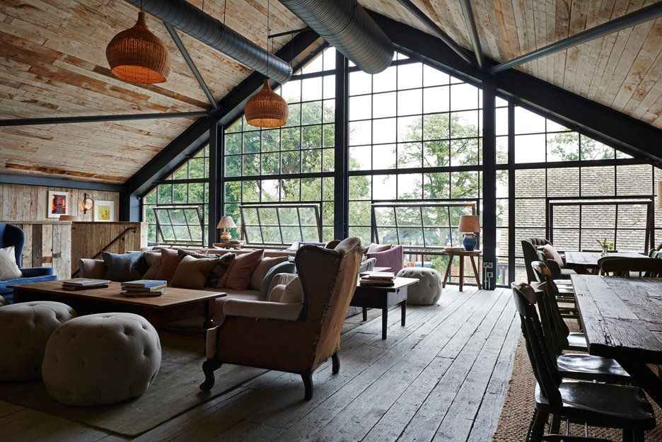 Wnętrza Soho Farmhouse utrzymane są w charakterystycznej dla Soho House „wygodnej estetyce”, łączącej stare i nowe meble, ciemne drewno, nowoczesne tkaniny i surowe wykończenia. Wśród nowych realizacji znalazł się także Boathouse nad jeziorem – przeszklony obiekt z basenem, studiem spinningu i strefą saun – oraz Gym and Yoga Studio z elewacją z poczerniałego drewna i minimalistycznym wnętrzem. Budynek kina z cegły i rdzawego metalu oferuje kameralną salę z aksamitnymi fotelami i panelami z orzecha. Oryginalne kamienne zabudowania farmy zostały zaadaptowane na pokoje gościnne i przestrzenie gastronomiczne, tworząc luksusowy hotel, który harmonijnie łączy architekturę, design i krajobraz.