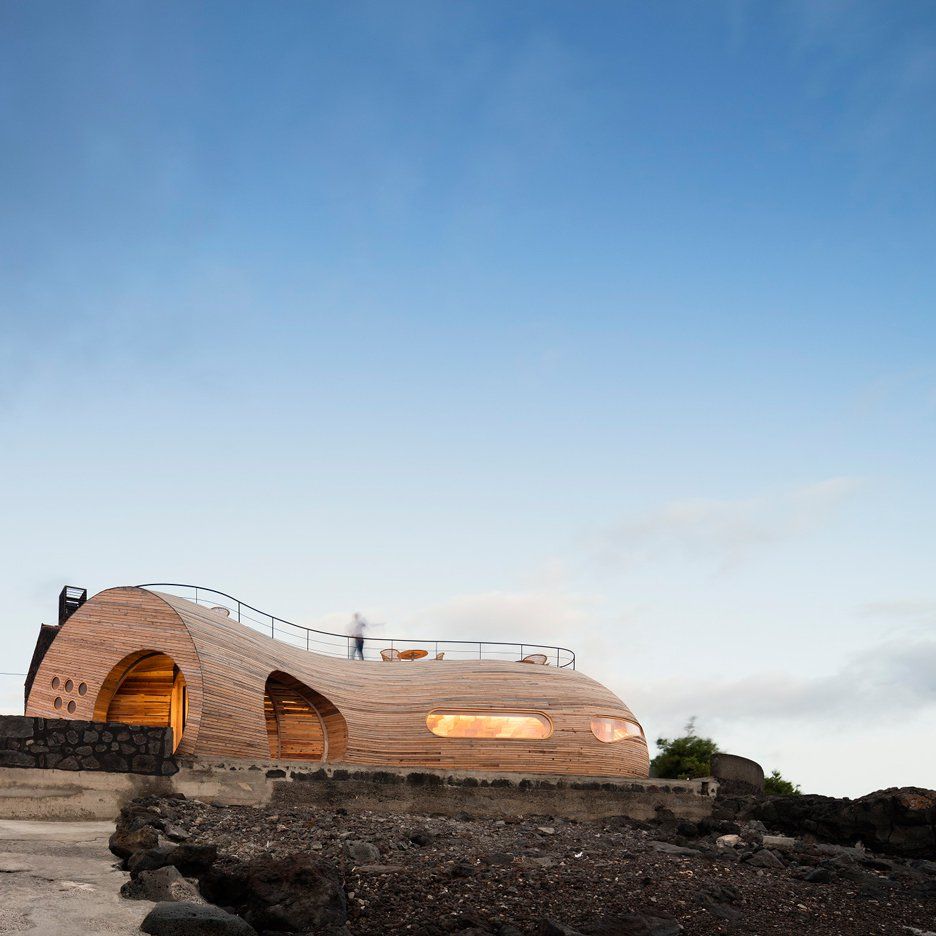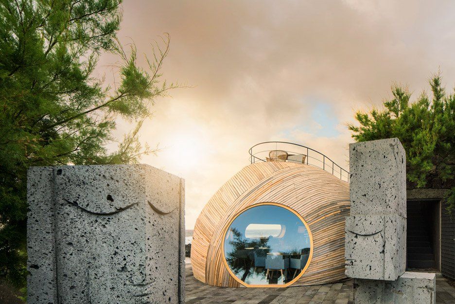 Cella Bar to wyjątkowa restauracja i bar na Azorach, zlokalizowane na zachodnim wybrzeżu wyspy Pico, w samym sercu archipelagu leżącego na środku Oceanu Atlantyckiego. Projekt autorstwa FCC Arquitectura we współpracy z projektantem wnętrz Paulo Lobo składa się z dwóch kontrastujących, a jednocześnie uzupełniających się brył: odrestaurowanej kamiennej stodoły zbudowanej z wulkanicznej skały oraz dużej, organicznej drewnianej przybudówki o zaokrąglonej formie. Nowa część budynku została zainspirowana symbolicznym połączeniem wieloryba i beczki na wino, co bezpośrednio nawiązuje do historii wyspy, tradycji wielorybniczych, krajobrazu wulkanicznego oraz lokalnej kultury winiarskiej. Całość stanowi przykład architektury, która łączy dziedzictwo miejsca z nowoczesnym podejściem do formy, bliskim estetyce, jaką reprezentuje także trend nowoczesna stodoła.