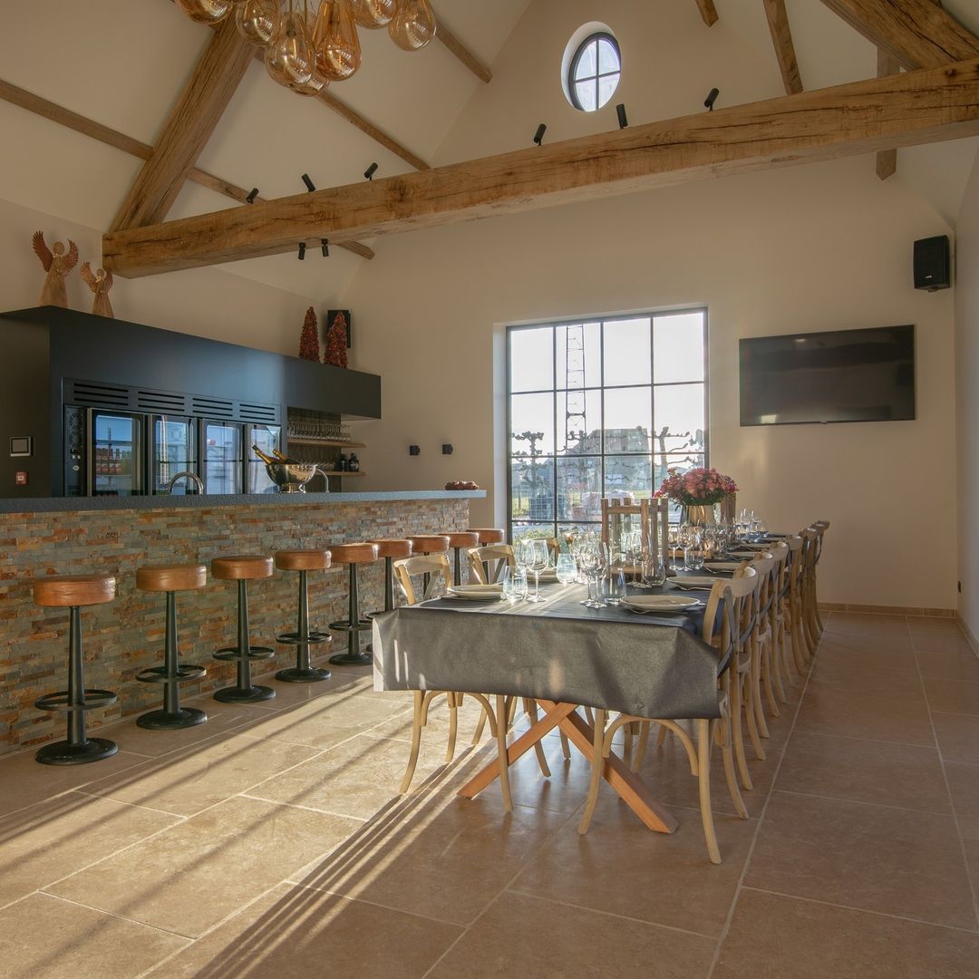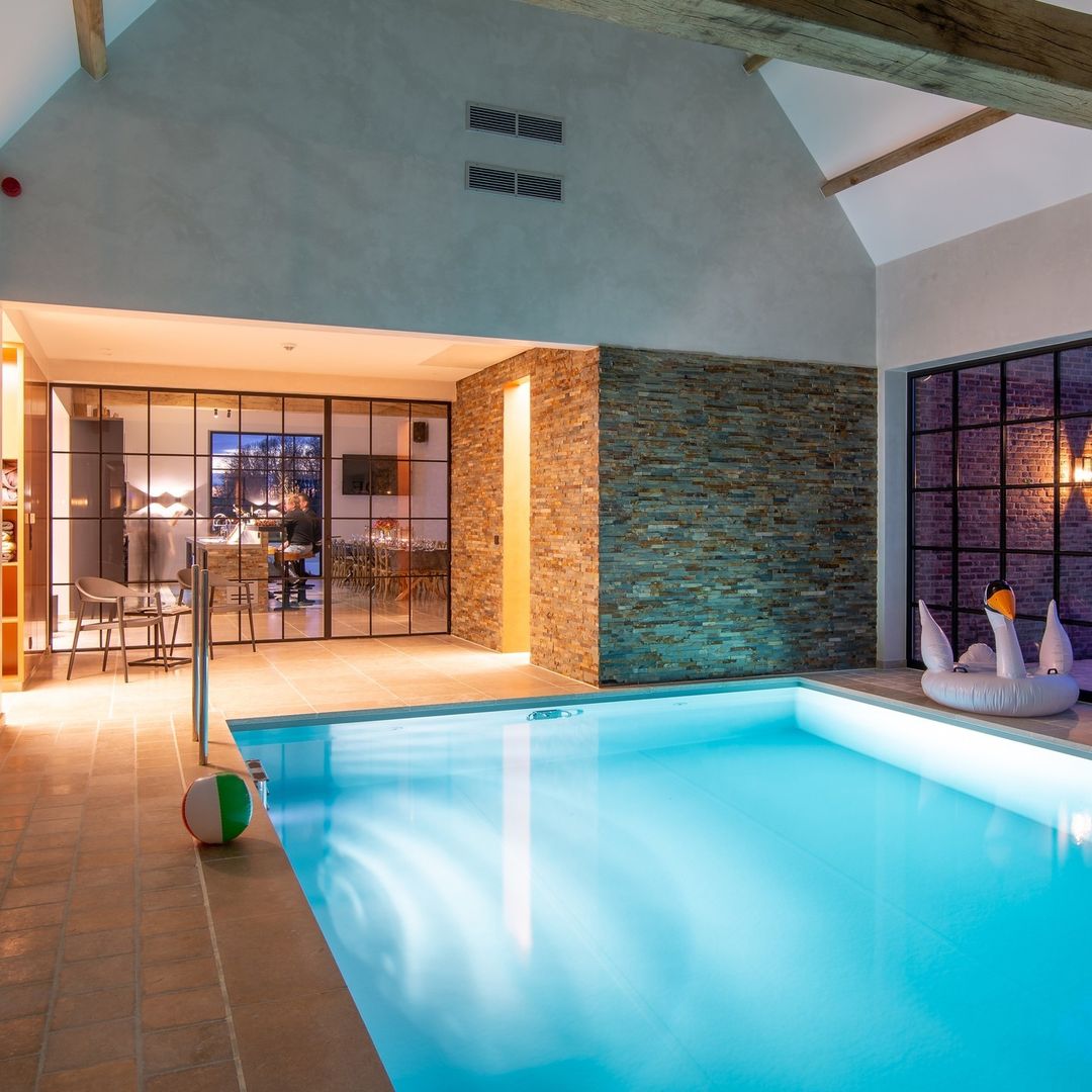 W pełni odrestaurowana nowoczesna stodoła została wyposażona w nowoczesne udogodnienia, które zapewniają komfort przez cały rok. Wnętrze kryje basen wewnętrzny, saunę na podczerwień, a także przestronne pomieszczenia do wspólnego spędzania czasu. Dzięki przemyślanemu połączeniu tradycyjnych materiałów i nowoczesnych rozwiązań, De Kaleihoeve to idealne miejsce na luksusowy wypoczynek na wsi.