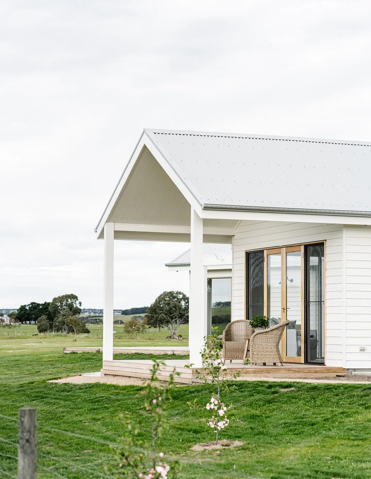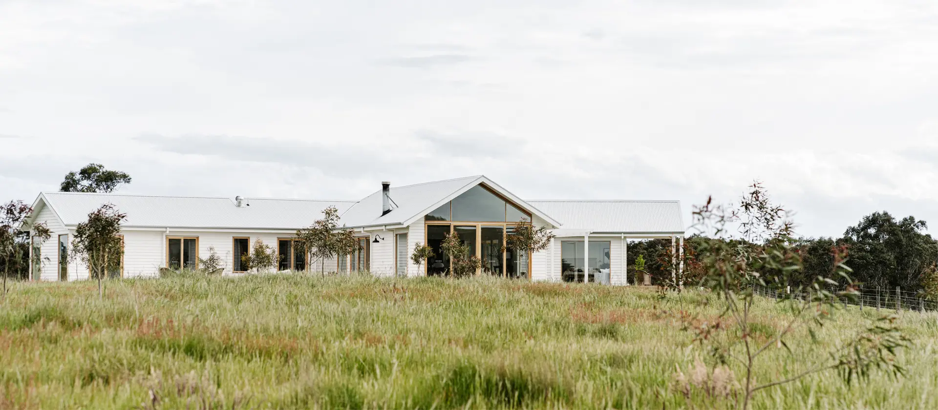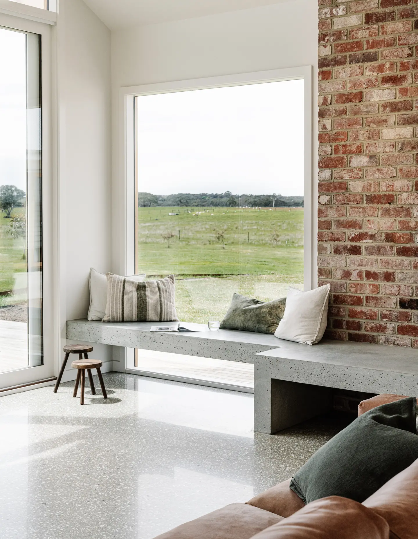Położenie działki okazało się kluczowe. Otoczona gospodarstwami rolnymi, a jednocześnie blisko miasteczka, plaż Surf Coast i rodziny mieszkającej w Melbourne, oferowała idealne warunki do życia. Naturalne ukształtowanie terenu i otwarte, trawiaste przestrzenie stały się inspiracją dla projektu domu, który miał harmonijnie wpisywać się w krajobraz i minimalizować negatywny wpływ na środowisko.