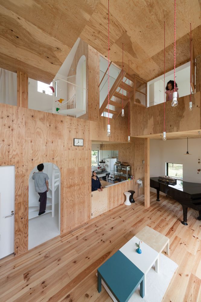 Ten wyjątkowy dom w pobliżu Tokio powstał na działce otoczonej kasztanami i pnączami kiwi, które od początku były inspiracją dla architektów. Projektując przestrzeń, uwzględniono zarówno zalety, jak i wady otoczenia – latem obecność komarów, zimą chłód, a także sąsiedztwo ulicy. Zewnętrzna bryła domu zachowuje klasyczny, konwencjonalny wygląd, ale wnętrze zostało zaprojektowane zupełnie inaczej – jako jedna, duża przestrzeń dla trzyosobowej rodziny, w której rozmieszczono mniejsze „pudełka” odpowiadające rozstawowi kasztanów. Prywatne strefy zapewniają intymność, a jednocześnie dzięki małym oknom domownicy czują obecność pozostałych członków rodziny, co tworzy wrażenie naturalnej wspólnoty, charakterystycznej dla nowoczesnej stodoły inspirowanej naturą.