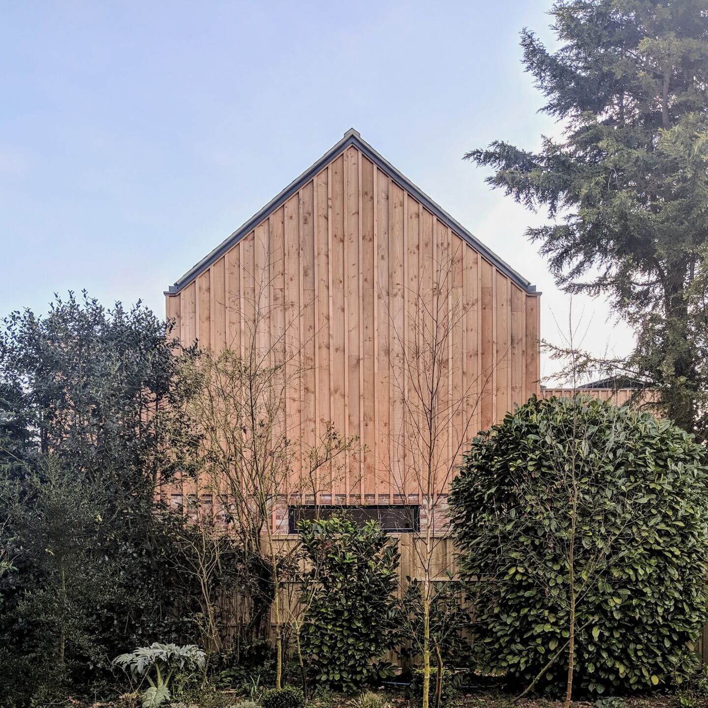 W projekcie zastosowano deskę modrzewiową i okładziny z listew, zaprojektowane przez Campion Design, które łączą odzyskane cegły i drewno. Dzięki temu stworzono nowoczesną interpretację stalowej falistej blachy, która kojarzy się z tradycyjnymi stodołami w Lincolnshire.