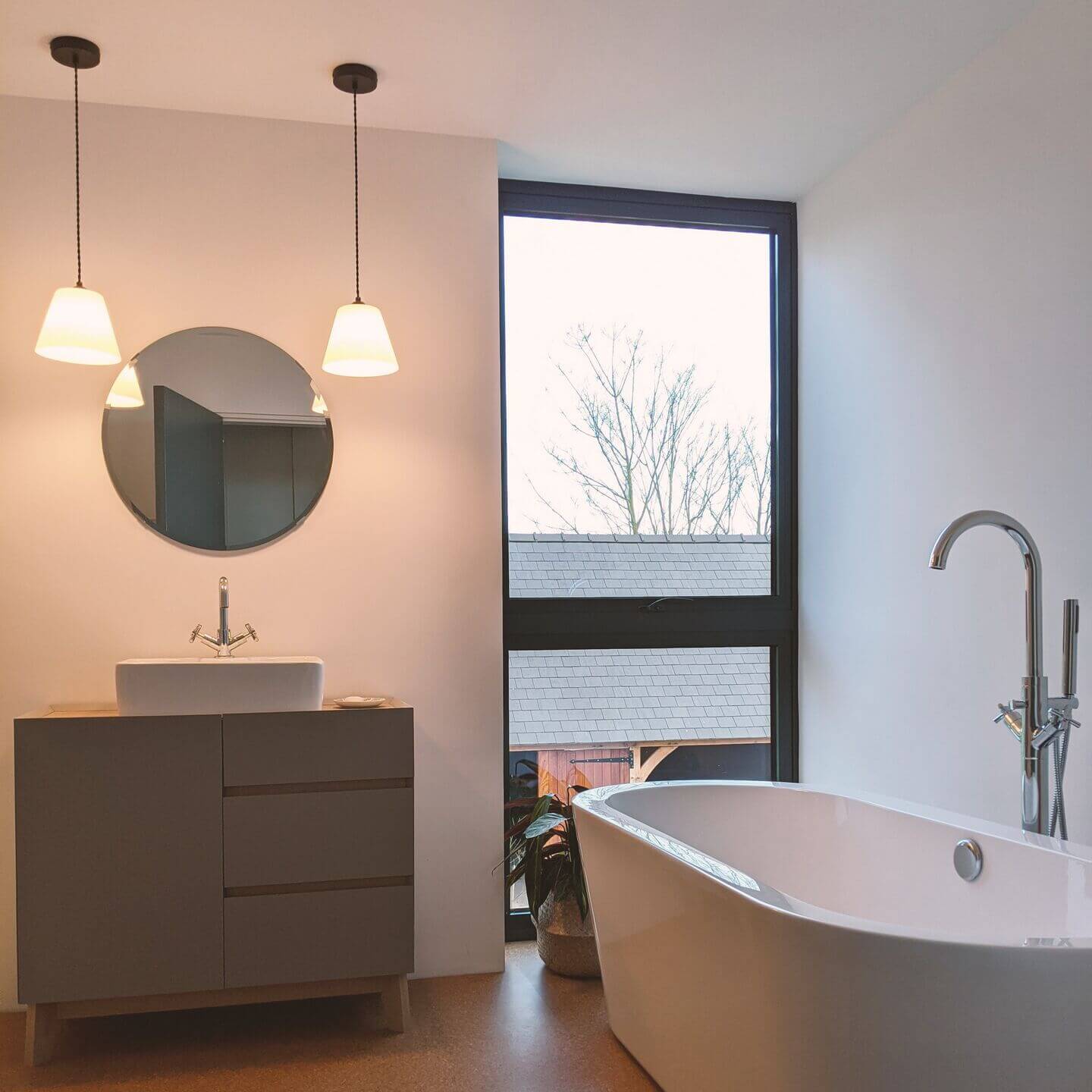 Projekt inspirowany tradycyjną architekturą, szczególnie STODOŁAMI, łączy w sobie szczyty oraz tekstury przypominające lokalne budowle. Orchard House to zeroemisyjny, samowystarczalny dom, wyposażony w zbiór wody deszczowej, panele słoneczne, powietrzną pompę ciepła oraz wentylację z odzyskiem ciepła. Wykorzystano także panele SIP wypełnione pełną izolacją z oleju rzepakowego, dzięki czemu dom jest jednym z najbardziej energooszczędnych obiektów.