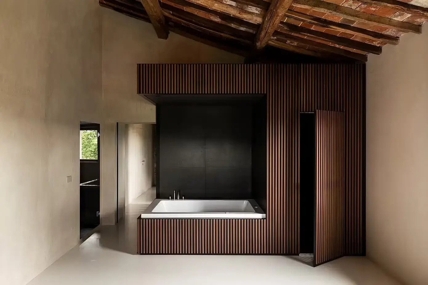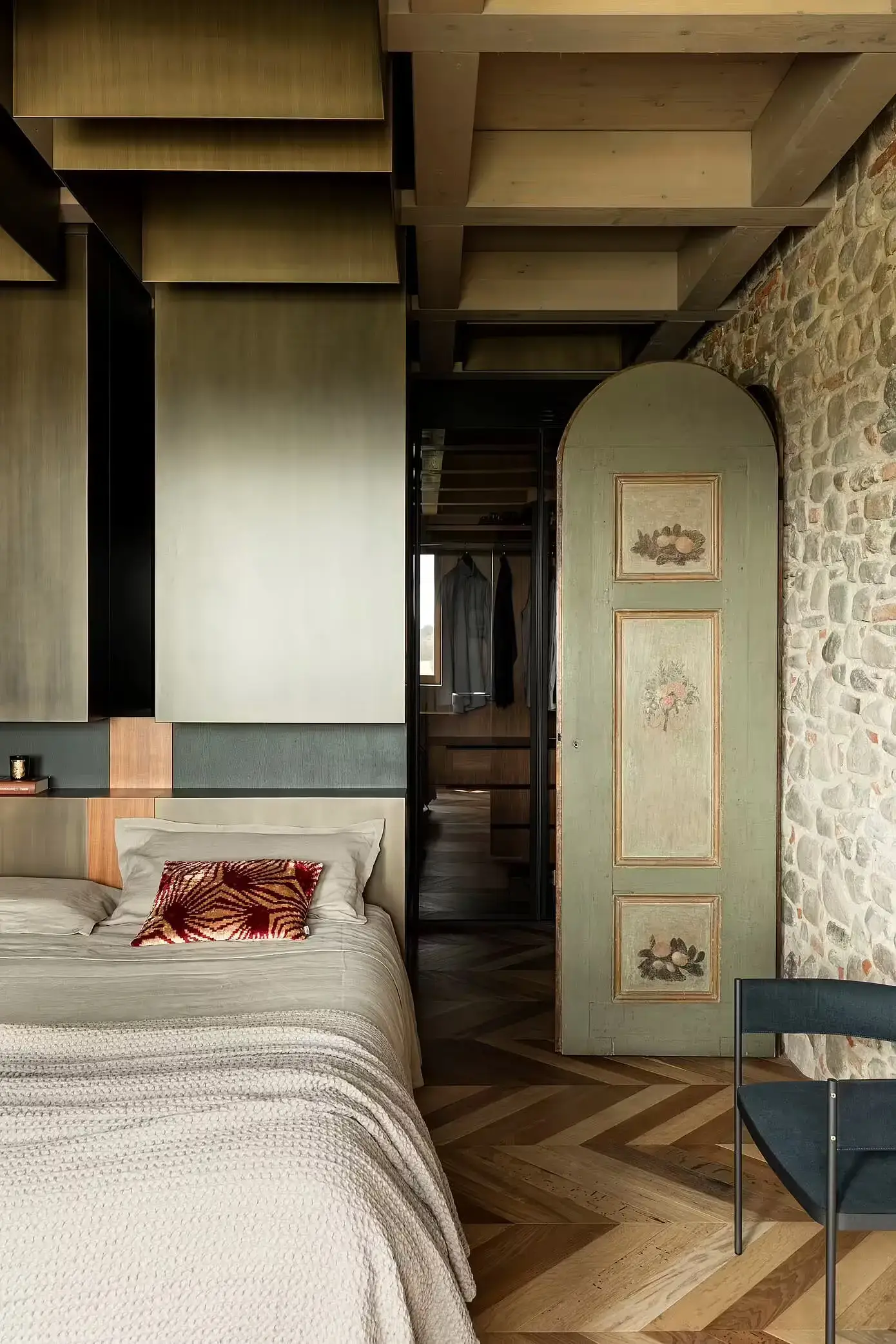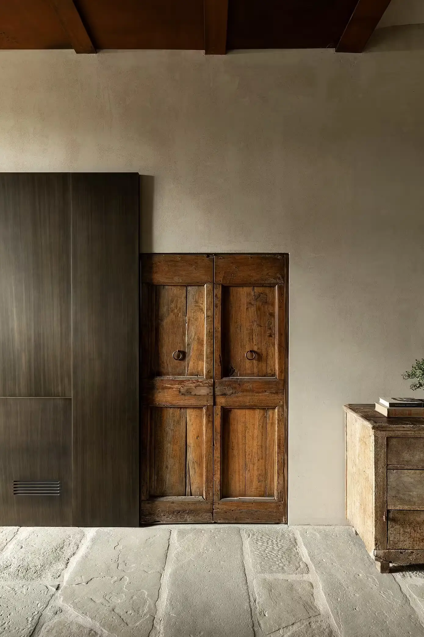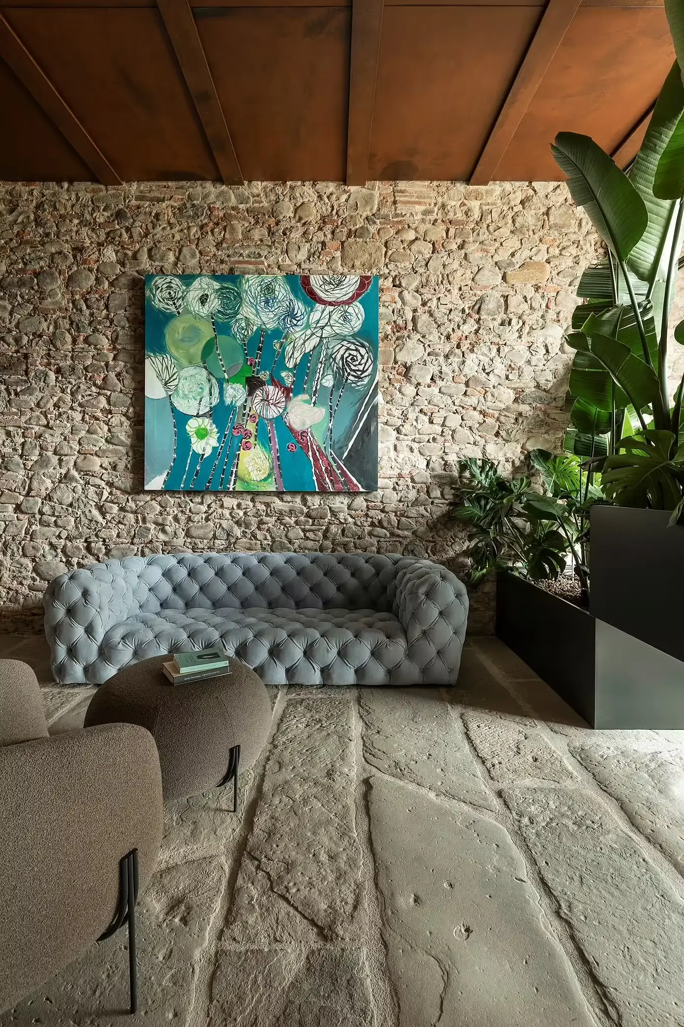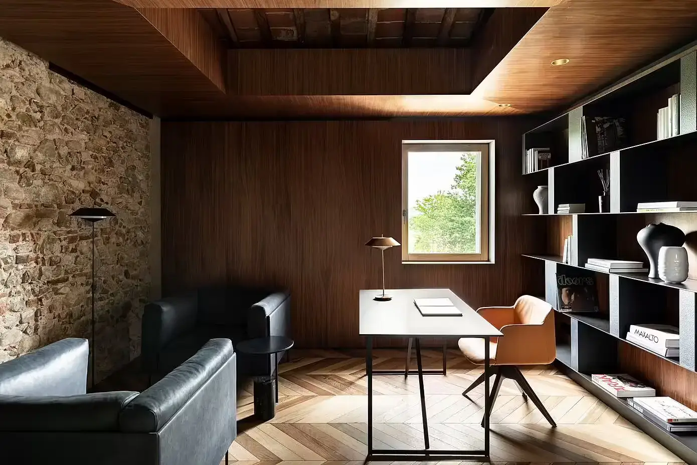 Od dużych kamiennych płyt w korytarzu wejściowym po opalizujący aksamit i polerowany mosiądz . Każdy zakątek tego domu opowiada historię. Oryginalne drewno w dużym salonie kontrastuje z liniowymi wzorami z malowanego aluminium, tworząc przestrzeń zarówno wygodną, jak i estetyczną. Jest to dom, który naprawdę ucieleśnia ducha toskańskiej wsi, oferując spokojny wypoczynek od zgiełku miejskiego życia. Autentyczne elementy obiektu, oryginalne materiały i wyjątkowa przestrzenność niektórych pomieszczeń zachowano. Każde pomieszczenie, każdy element opowiada część historii Leopoldiny, teraz wzbogaconą o współczesną narrację, która tchnie nowe życie w przestrzeń.