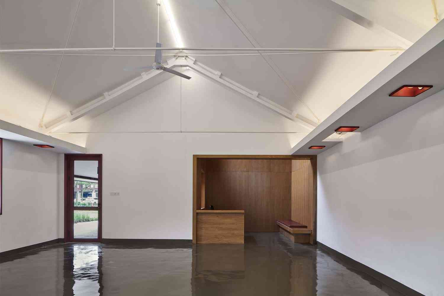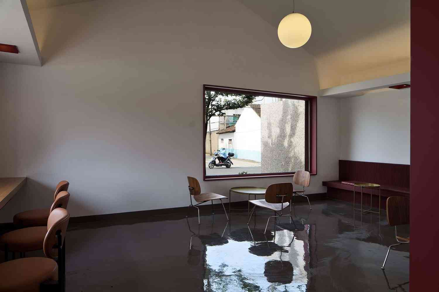 Ciekawym rozwiązaniem przestrzennym są liczne dziedzińce i patia wkomponowane wewnątrz kompleksu. Dzięki wycięciom w dachu wpuszczono naturalne światło i stworzono mikroprzestrzenie – „kieszonkowe dziedzińce”, które sprzyjają relaksowi i integracji. Te rozwiązania architektoniczne zwiększają relację między wnętrzem a zewnętrzem, poszerzając wizualnie przestrzeń i czyniąc ją bardziej dostępną. Całość projektu łączy tradycyjne materiały z nowoczesnym podejściem do funkcjonalności, adaptując dawny zakład produkcyjny w miejsce spotkań, rekreacji i aktywności kulturalnej – prawdziwe serce społeczności w Jianshe.