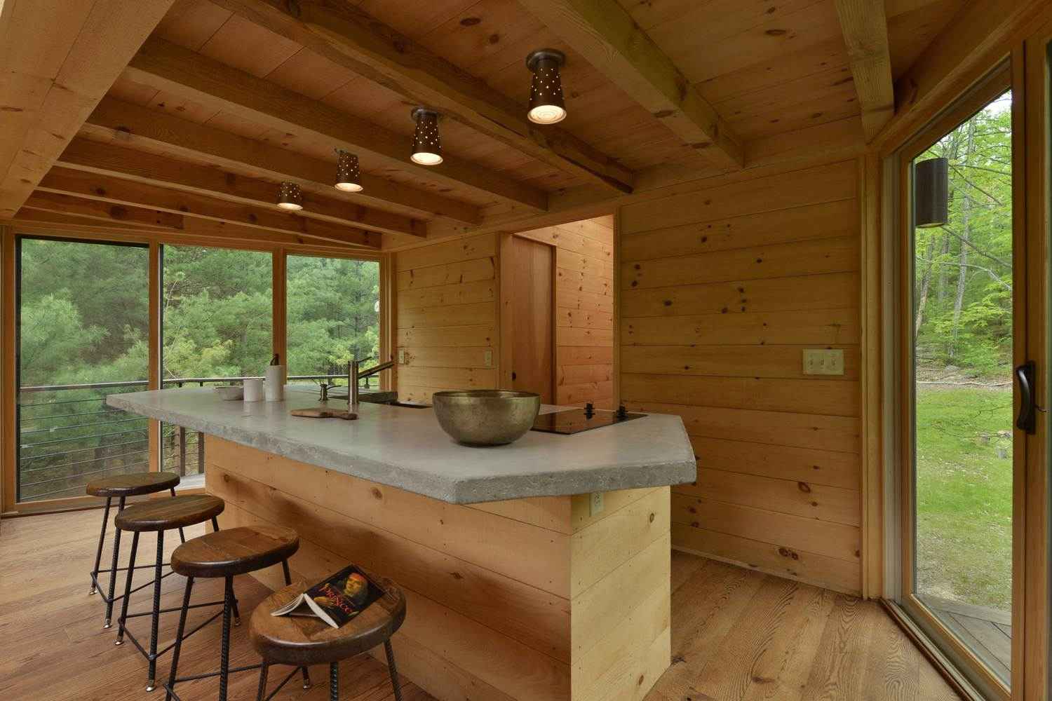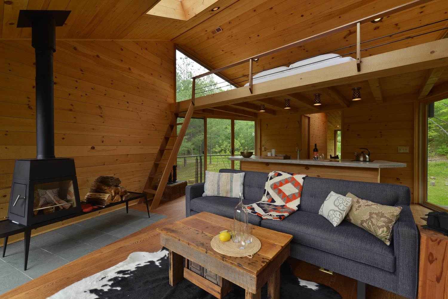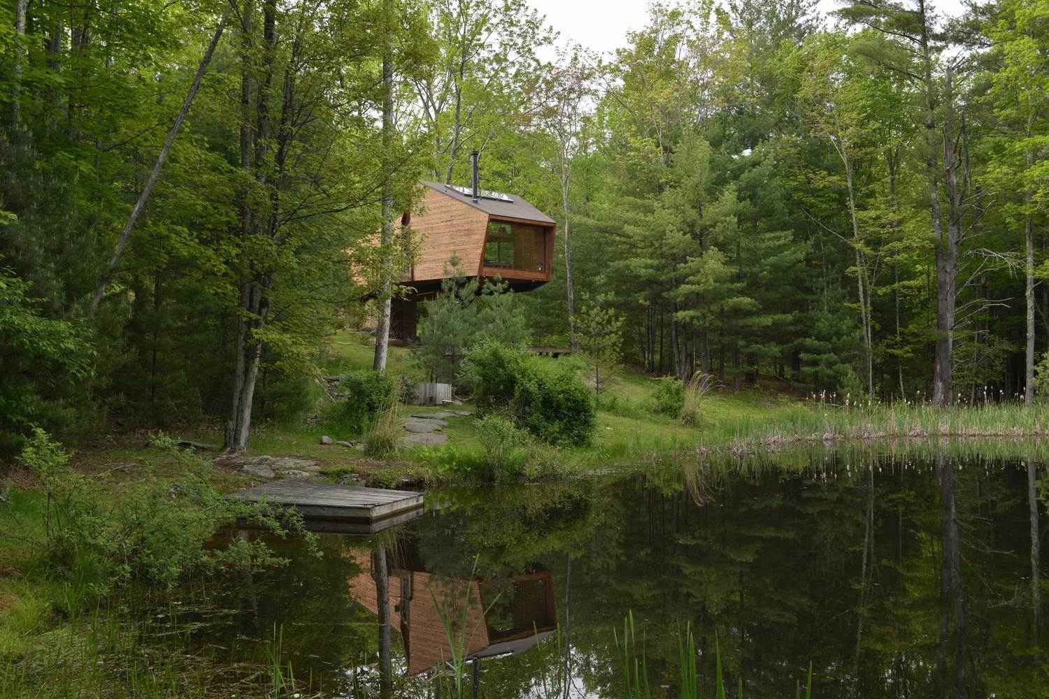 Ten wyjątkowy domek stoi w pobliżu miasteczka Woodstock, zaledwie dwie godziny drogi od Nowego Jorku. Położony w sercu natury, w otoczeniu gęstego lasu i spokojnego jeziorka, oferuje niepowtarzalny klimat i prywatność. Dzięki podniesionej konstrukcji można podziwiać zachwycające panoramy pasma górskiego Catskills, co sprawia, że to idealne miejsce na odpoczynek od miejskiego zgiełku.