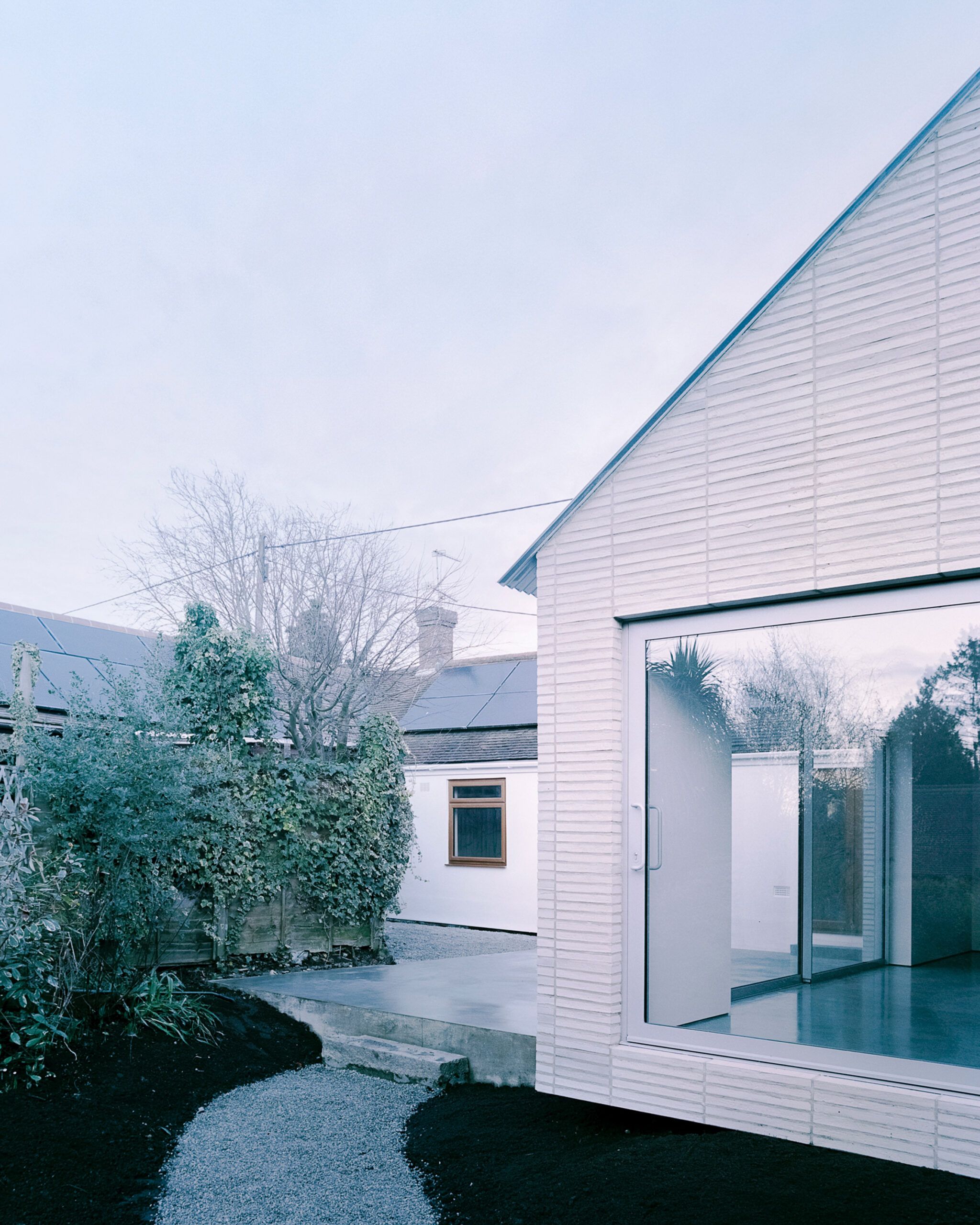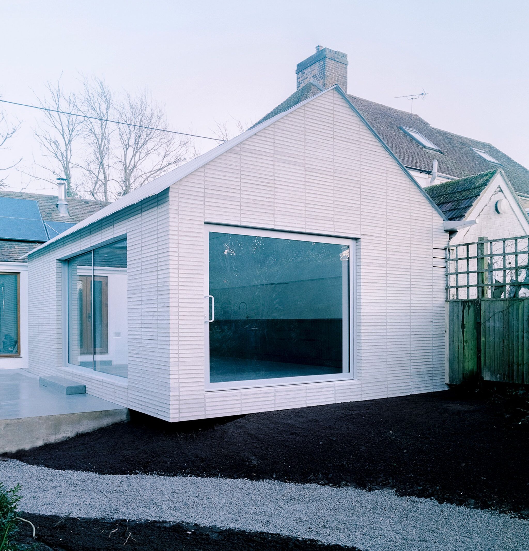 Projekt inspirowany jest XVIII-wiecznymi magazynami ziarna, które były podnoszone nad ziemię, aby chronić przechowywane produkty. W „Over the Edge” przybudówka zawiera większą kuchnię oraz studio malarskie i unosi się nad gruntem, przypominając tradycyjne konstrukcje magazynowe. Na elewacji zastosowano cegłę o długich proporcjach ułożoną pionowo, co dodatkowo podkreśla wrażenie lekkości i nawiązuje do worków z ziarnem.